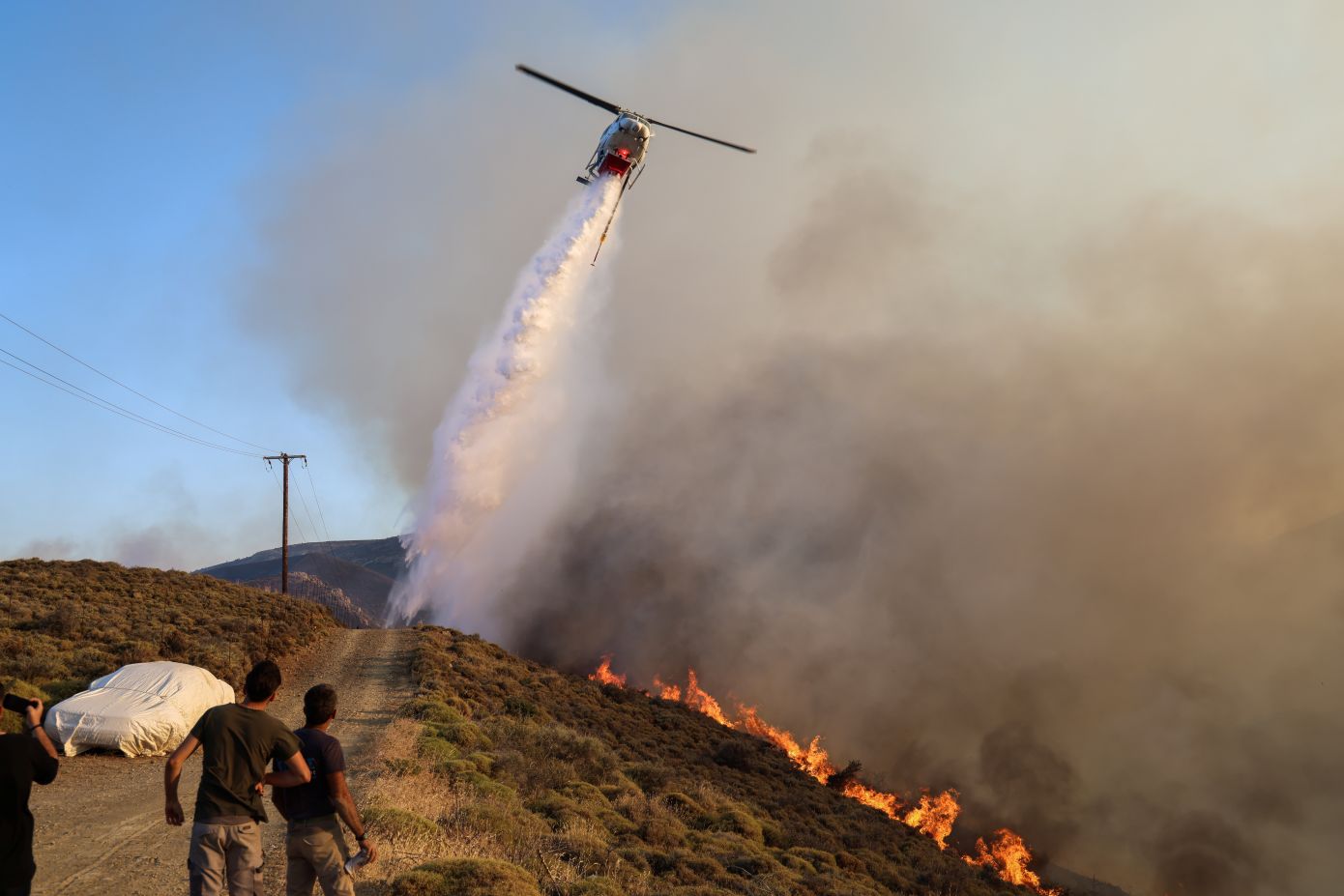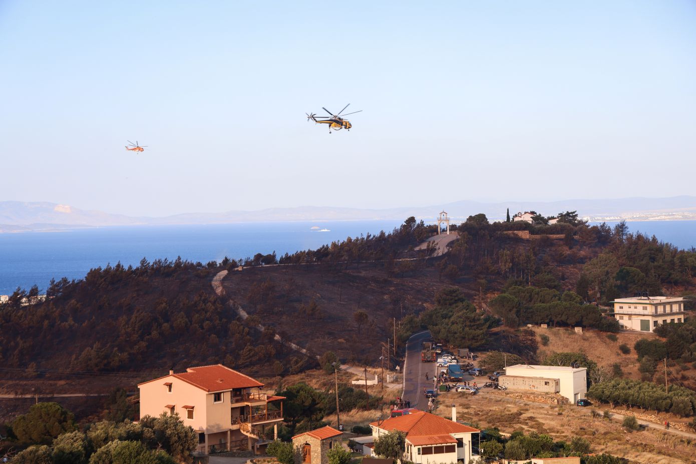 Σημειώνεται ότι έχουν εκκενωθεί, επίσης, οι περιοχές Άγιος Μακάριος Βροντάδων, Άγιος Παντελεήμονας, Καστρομηνά, Παρυφές, Γιαλούρικα και Παναγία Βοήθεια.