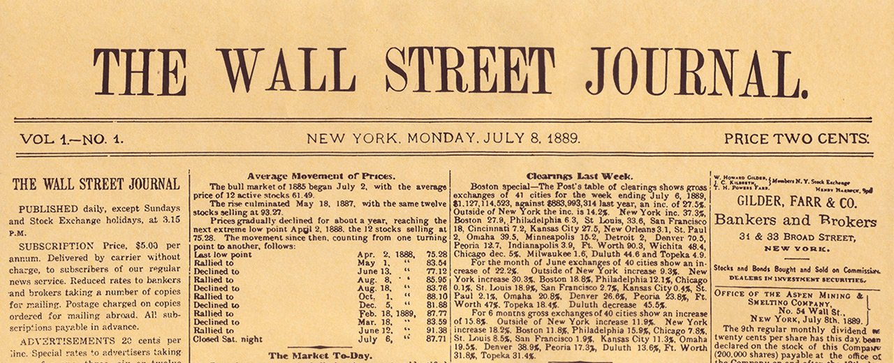 1889: Κυκλοφορεί για πρώτη φορά η οικονομική εφημερίδα The Wall Street Journal, που θα εξελιχθεί σε παγκόσμια οικονομική επιρροή.