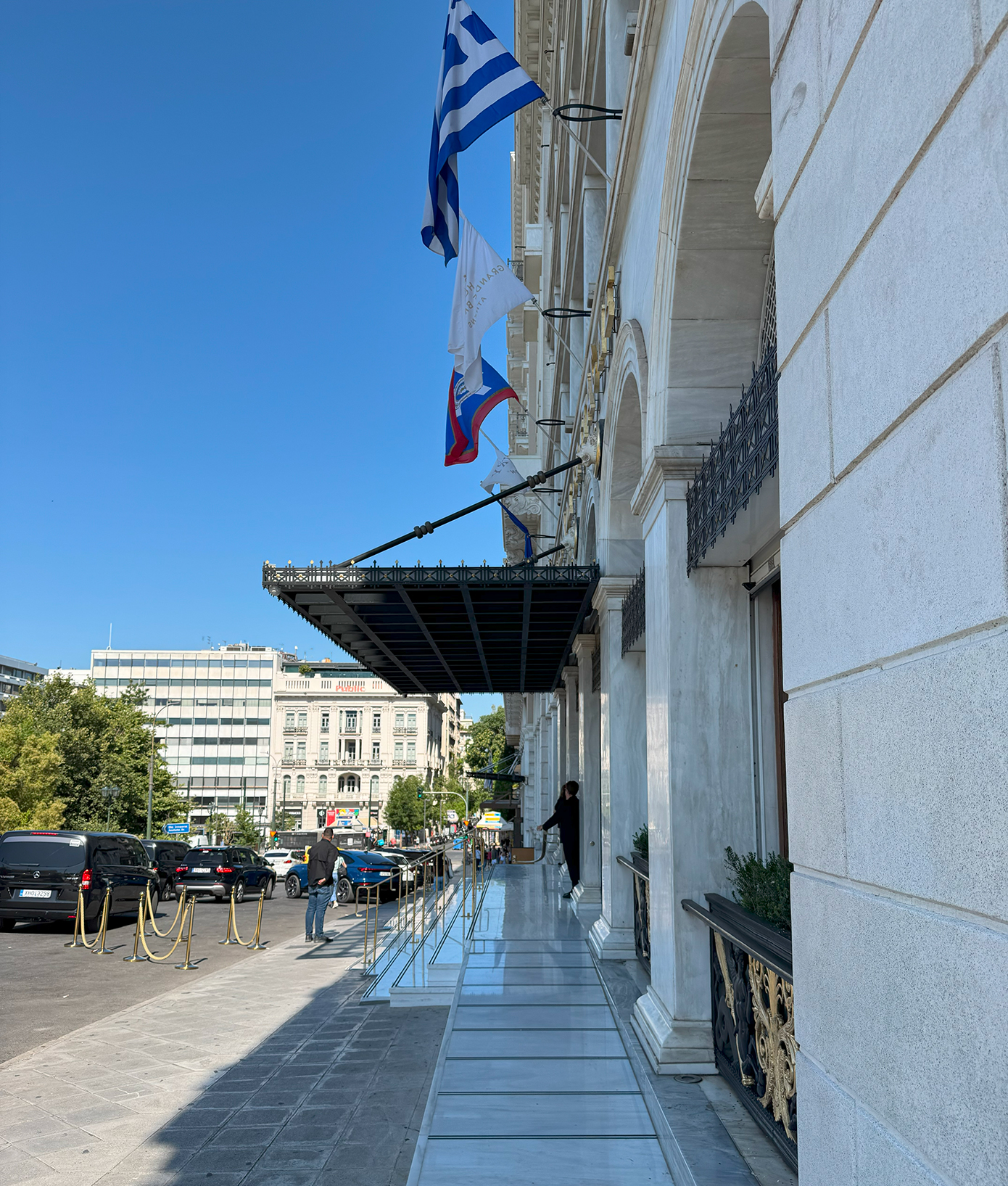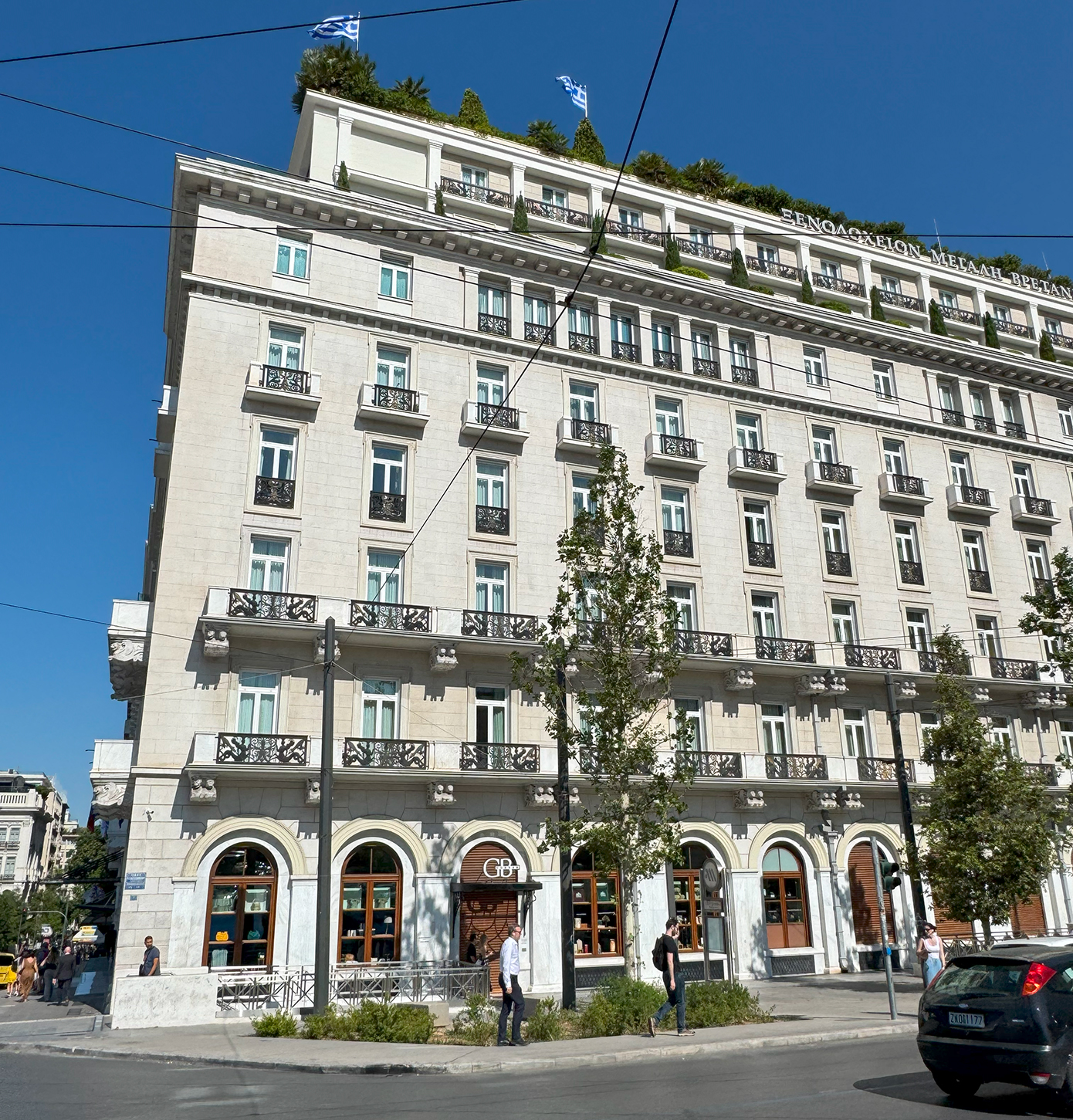 Θυμίζουμε ότι το κτίριο ανεγέρθηκε το 1842 και μετεγκαταστάθηκε εκεί το ξενοδοχείο (από τη Σταδίου όπου βρισκόταν αρχικά) το 1842.