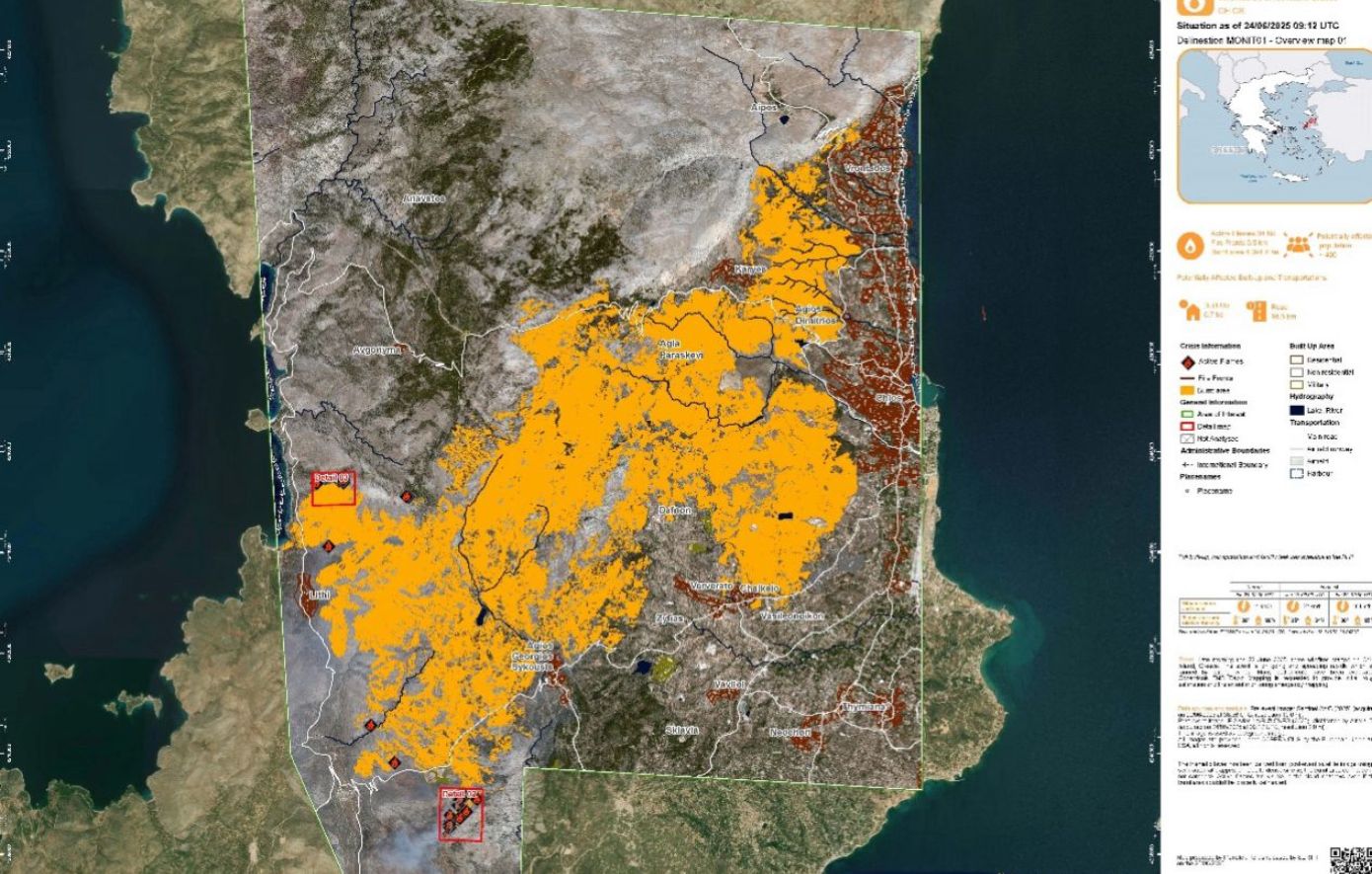 Ειδικότερα, σήμερα στις 12:00 το μεσημέρι, έπειτα από αίτημα του υπουργείου Κλιματικής Κρίσης και Πολιτικής Προστασίας, θα περάσει πάνω από την πυρκαγιά και άλλος δορυφόρος και τα στοιχεία που θα καταγράψει, θα εξεταστούν από την ευρωπαϊκή υπηρεσία Copernicus και πιθανότατα αργά το βράδυ θα είναι γνωστή με ακρίβεια η καμένη έκταση.