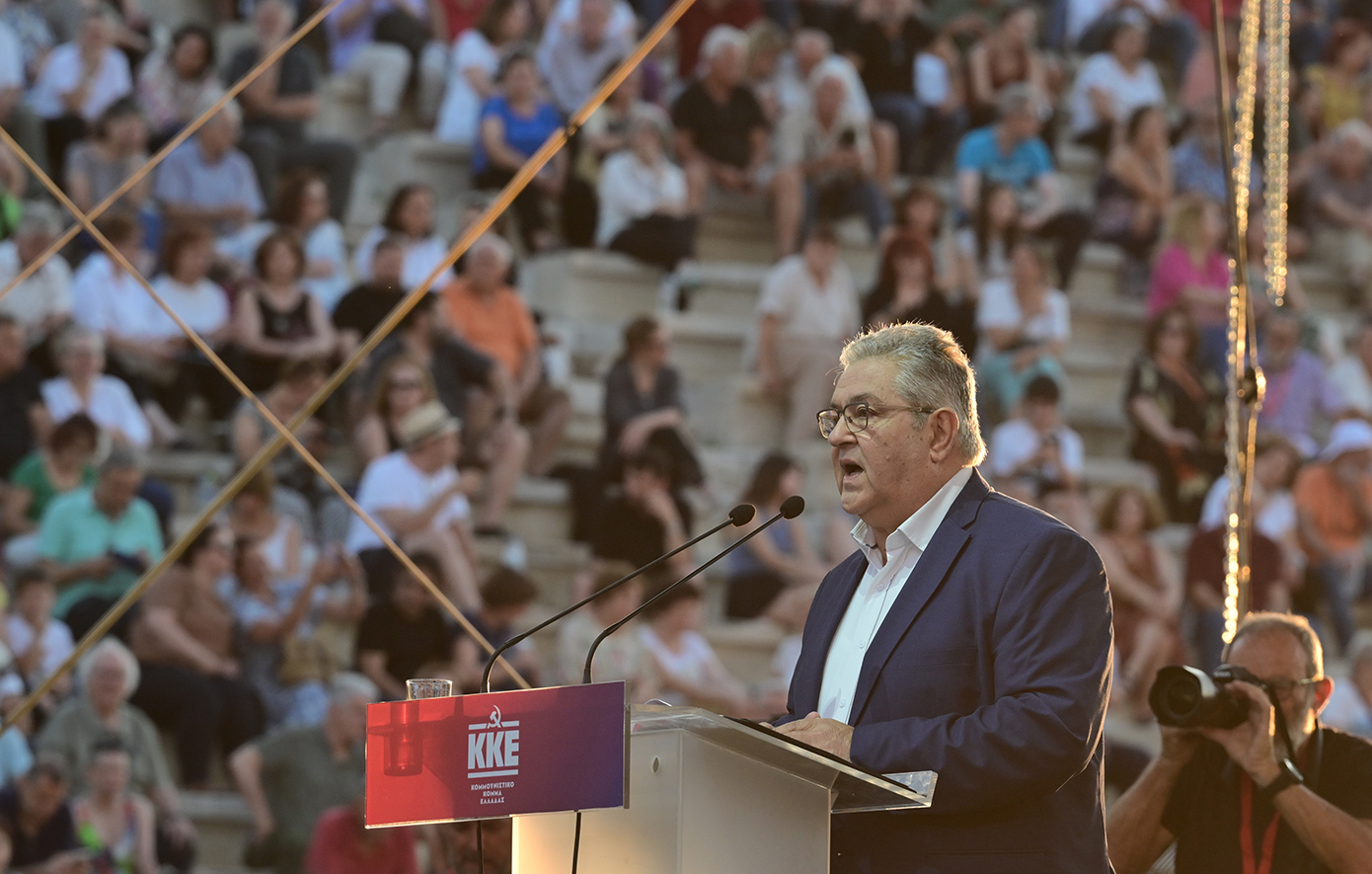 Τραγούδι και αγώνας έγιναν «ένα», «δύο έννοιες απόλυτα συγχωνευμένες σε μια ιστορική συναυλία, που αντικειμενικά παίρνει το νόημα μιας ιστορικής διαδήλωσης, ενός ιστορικού λαϊκού συλλαλητηρίου για την καταδίκη του πολέμου», είπε, μεταξύ άλλων, στην ομιλία του ο γγ της ΚΕ του ΚΚΕ Δημήτρης Κουτσούμπας.