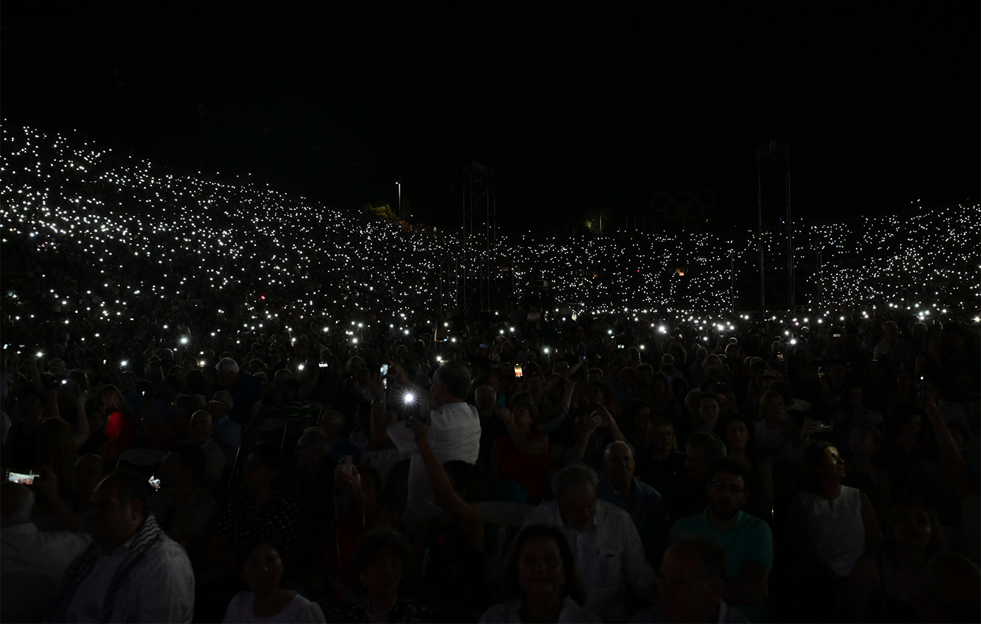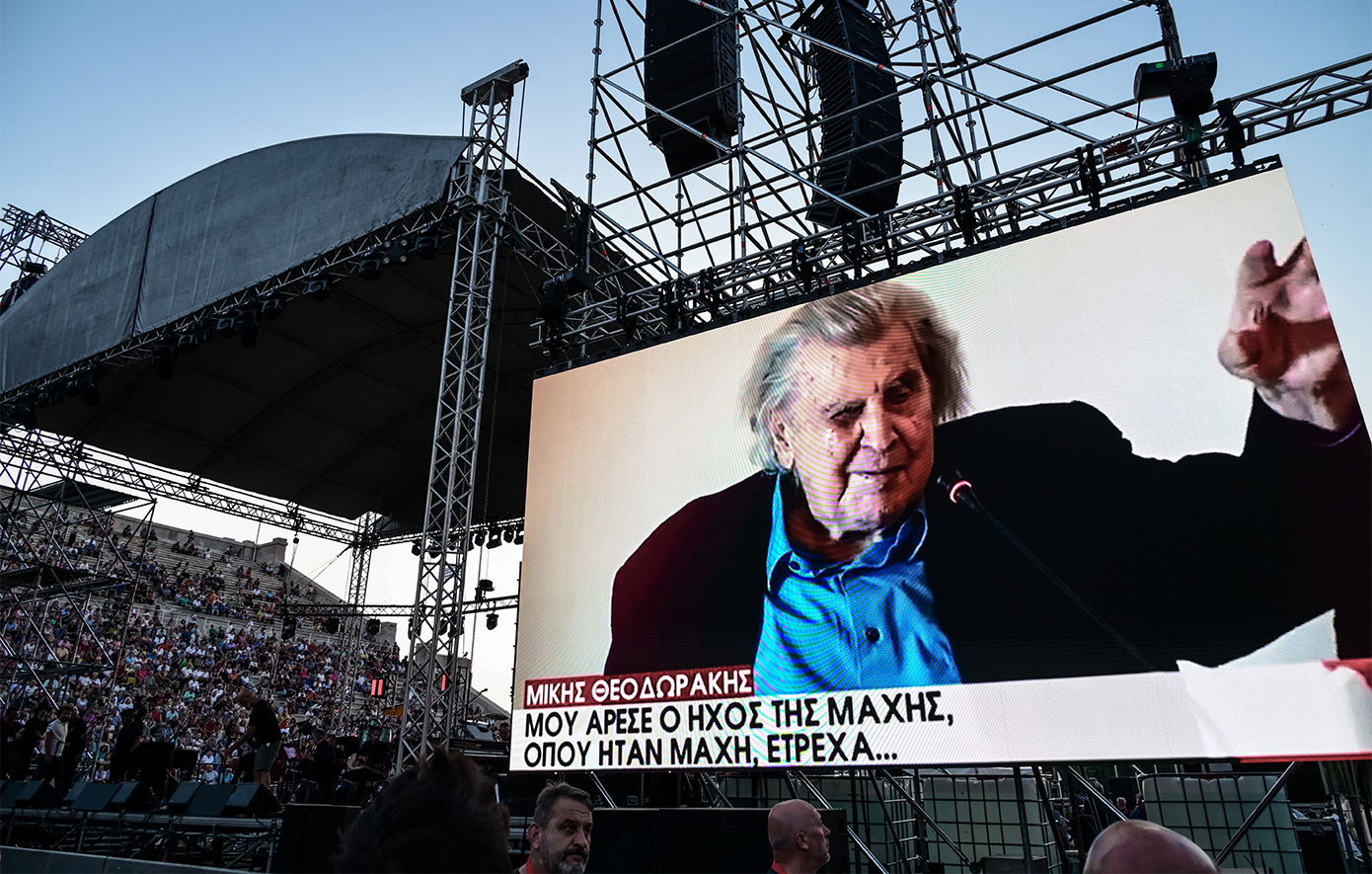 Μια πραγματικά ιστορική συναυλία διοργάνωσε, το βράδυ της Τετάρτης, η ΚΕ του ΚΚΕ και η οικογένεια του Μίκη Θεοδωράκη για τα 100 χρόνια από τη γέννηση του μεγάλου συνθέτη, στο κατάμεστο Καλλιμάρμαρο Παναθηναϊκό Στάδιο.