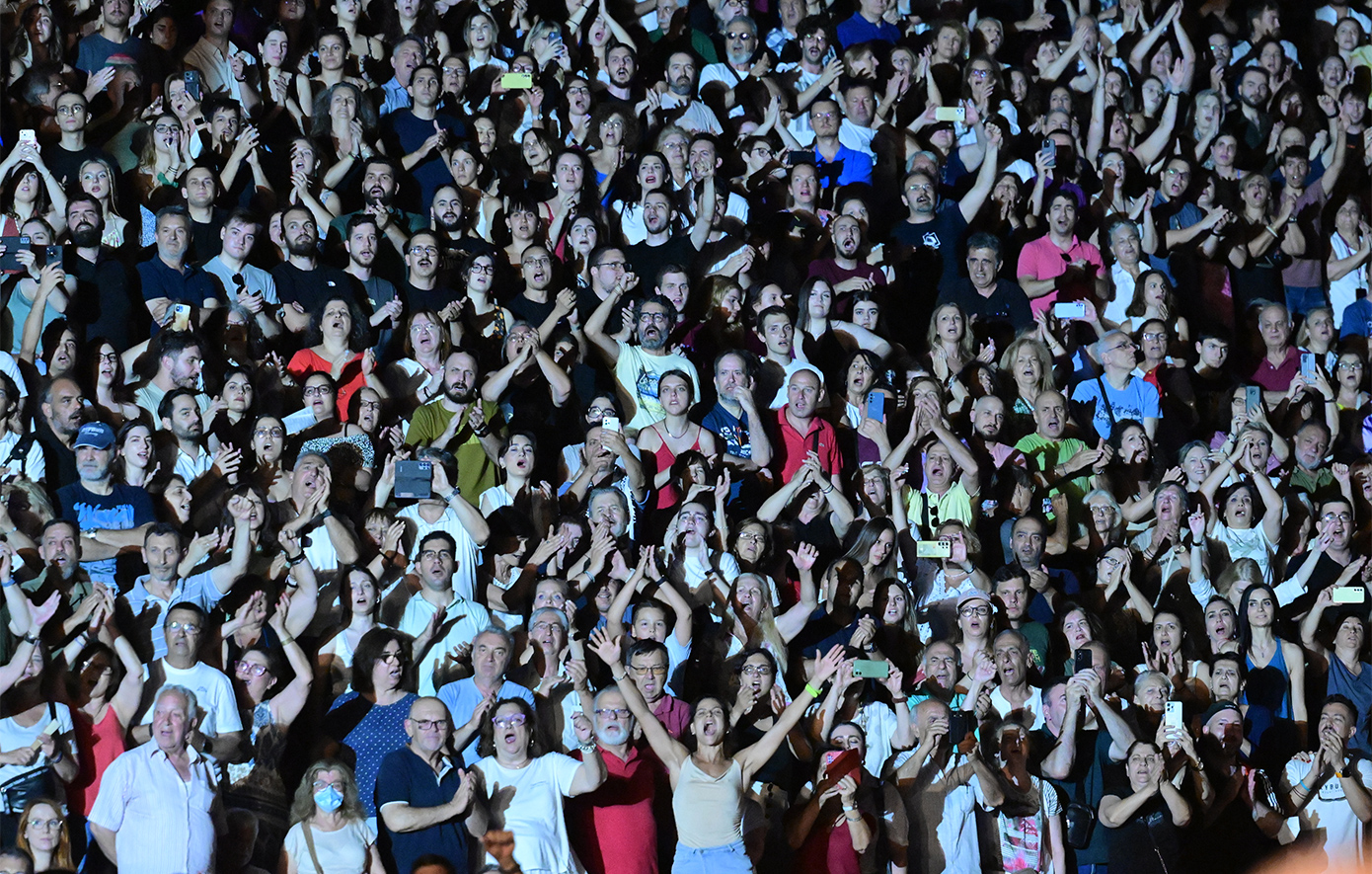 ‘Ανθρωποι όλων των ηλικιών έδωσαν το «παρών» τιμώντας τον Μίκη Θεοδωράκη, ενώ δεν ήταν λίγες οι φορές που μετατράπηκαν σε χορωδία συνοδεύοντας τους καλλιτέχνες.