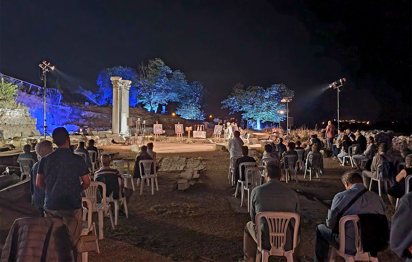 Οι πιστοί, συγκεντρωμένοι κάτω από τον έναστρο καλοκαιρινό ουρανό, βίωσαν για μια ακόμη χρονιά τη μοναδικότητα της στιγμής σε ένα περιβάλλον που αποπνέει ιστορική και θρησκευτική σημασία. Τα ερείπια της παλαιοχριστιανικής Βασιλικής Α’, που χρονολογείται από τον 5ο αιώνα μ.Χ., υπήρξε μάρτυρας των πρώτων χριστιανικών κοινοτήτων και έχει συνδεθεί άρρηκτα με το έργο του Αποστόλου Παύλου, ιδρύοντας στη φημισμένη πόλη των Φιλίππων την πρώτη χριστιανική κοινότητα στην Ευρώπη.