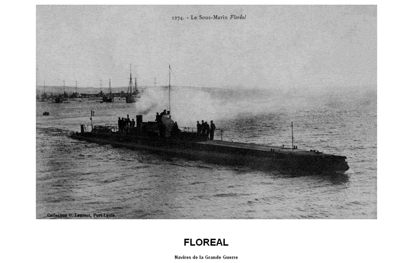 Η παρουσίαση θα αφορά στο ένα τμήμα της το υποβρύχιο FLOREAL (Q 54) κλάσης Pluviose που βυθίστηκε στις 03:25, δέκα περίπου μίλια δυτικά της Κασσάνδρας τα ξημερώματα της 2/8/1918. Το FLOREAL, σχέδιο του Γάλλου μηχανικού Maxime Laubeuf, καθελκύστηκε στις 18 Απριλίου 1907 στο Χερβούργο και μπήκε σε υπηρεσία στις 16 Ιουνίου 1908. Ήταν ένα υποβρύχιο με παγκόσμιες καινοτομίες όπως αυτή του διπλού κύτους αλλά και του διπλού προωστήριου σχήματος – διπλοί κινητήρες. Ένα κομψό δημιούργημα με μήκος 51 μέτρα και εκτόπισμα 553 τόνους σε κατάδυση, το FLOREAL φιλοξενούσε 25 μέλη πλήρωμα και στην έναρξη του πολέμου είχε ενταχθεί στις γαλλικές μοίρες της Μάγχης, με κύρια αποστολή την ανθυποβρυχιακή περιπολία.