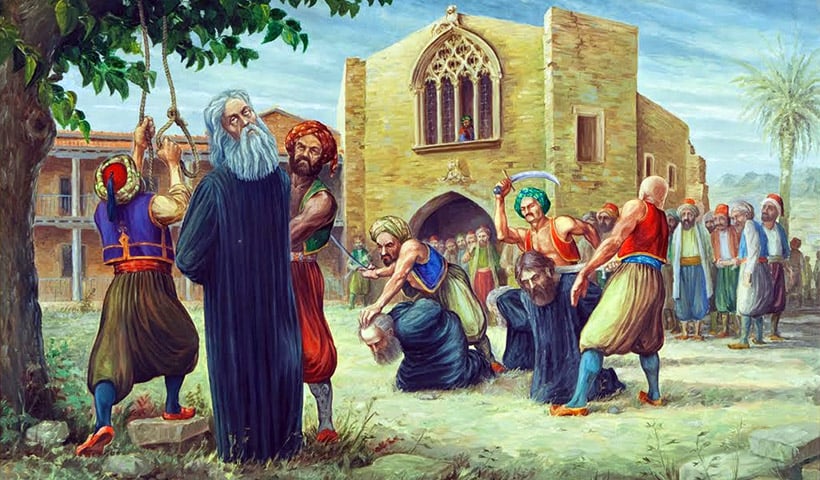 1821: Ο απαγχονισμός του Αρχιεπισκόπου Κυπριανού και ο αποκεφαλισμός των μητροπολιτών Πάφου Χρύσανθου, Κιτίου Μελετίου και Κηρυνείας Λαυρεντίου από τους Οθωμανούς στη Λευκωσία σηματοδοτούν το μαρτύριο των Κυπρίων στην έναρξη της Ελληνικής Επανάστασης. Η μαζική αυτή εκκαθάριση, που κορυφώνεται στις 9 Ιουλίου, συνοδεύεται από την εκτέλεση περίπου 470 επιφανών κατοίκων του νησιού, ανάμεσά τους ιερείς, προύχοντες και ηγούμενοι μοναστηριών. Η τραγική αυτή ημέρα αποτελεί σημείο καμπής για την κυπριακή ιστορία, καθώς εντείνει το πνεύμα αντίστασης και καταγράφεται ως σύμβολο θυσίας και εθνικής συνείδησης για τον κυπριακό Ελληνισμό.