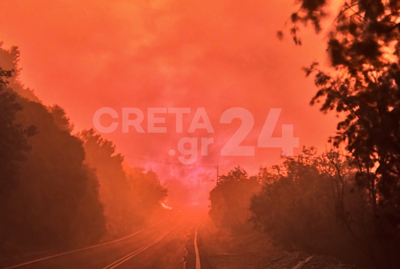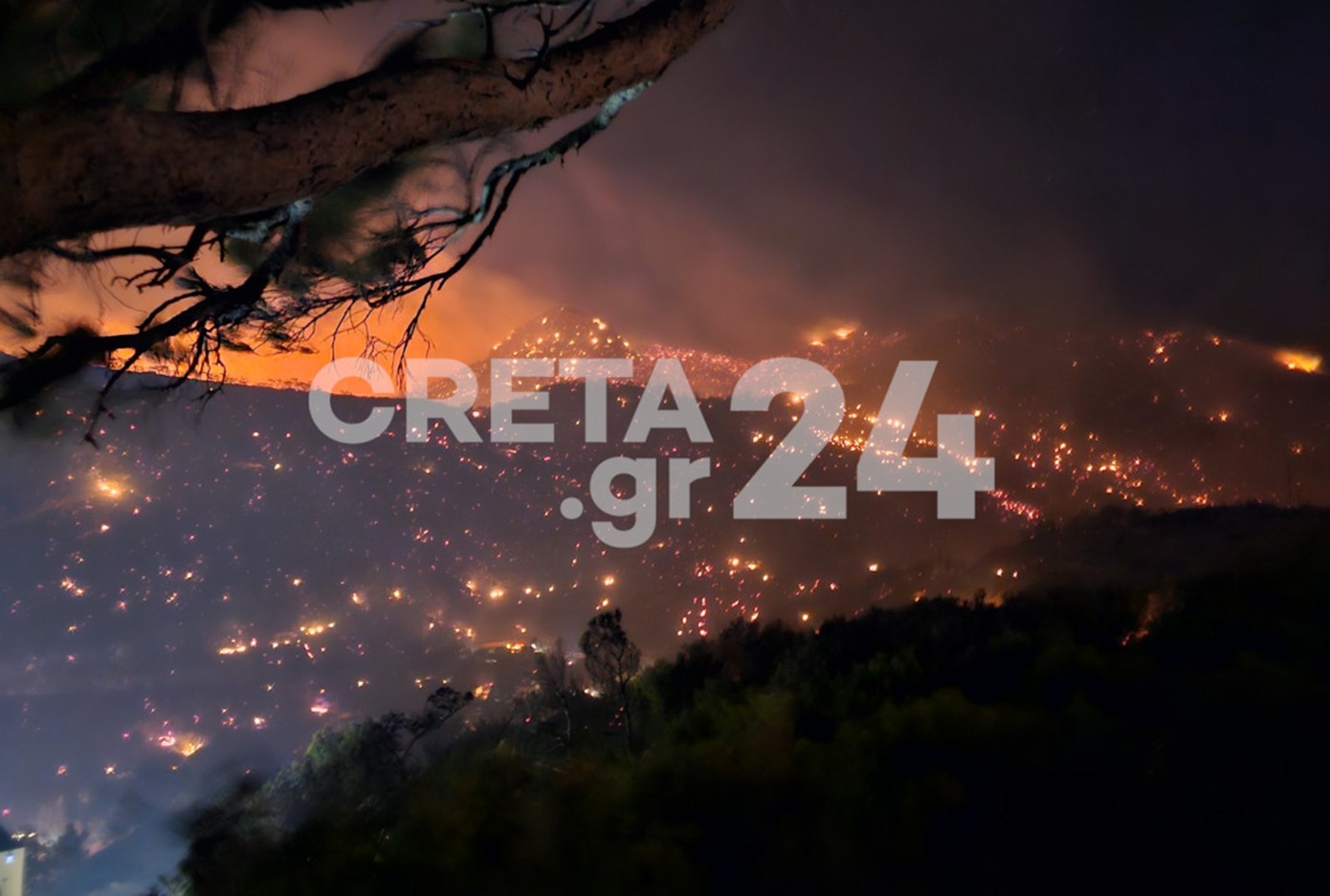 Σύμφωνα με το Cretalive σπίτια καίγονται στα Φέρμα και στην Αγία Φωτιά, με τους κατοίκους να έχουν εκκενώσει την περιοχή.