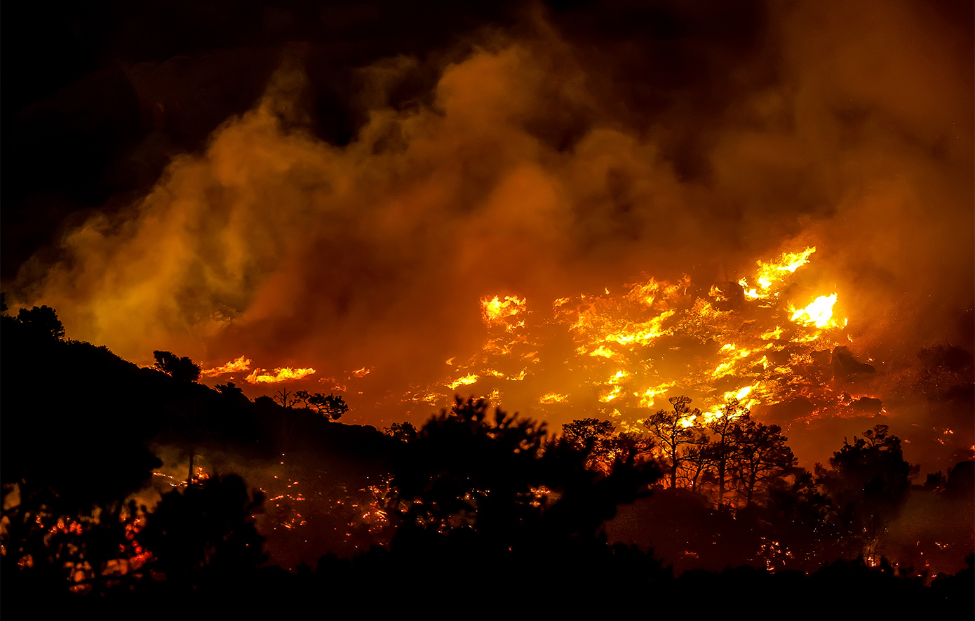 - Η αλληλεπίδραση των βόρειων ανέμων με την τοπογραφία της περιοχής οδηγεί σε εκρηκτική συμπεριφορά της πυρκαγιάς, ιδιαίτερα όπου αυτή συναντά πλούσια βλάστηση.