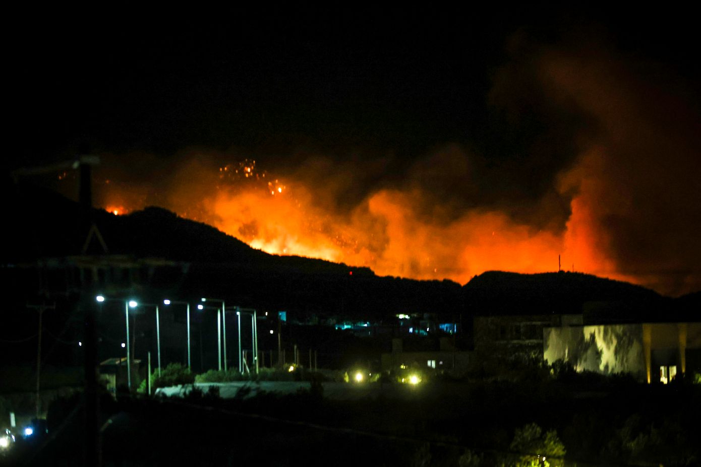 Περισσότεροι από 160 πυροσβέστες έδωσαν μάχη κατά τη διάρκεια της νύχτας με τις φλόγες, ενώ πριν πέσει το σκοτάδι 15 αεροσκάφη και 4 ελικόπτερα επιχειρούσαν στο μέτωπο.