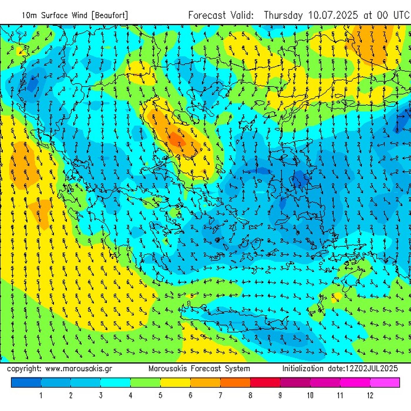 Αυτό γιατί μέσα στην Πέμπτη θα κατηφορίσει ψυχρό μέτωπο από τα βόρεια Βαλκάνια, όπου θα ενισχύσει σημαντικά τους βορειοδυτικούς ανέμους, προσεγγίζοντας και τα επίπεδα θύελλης και άρα, λοιπόν, η προσοχή μας εστιάζεται: