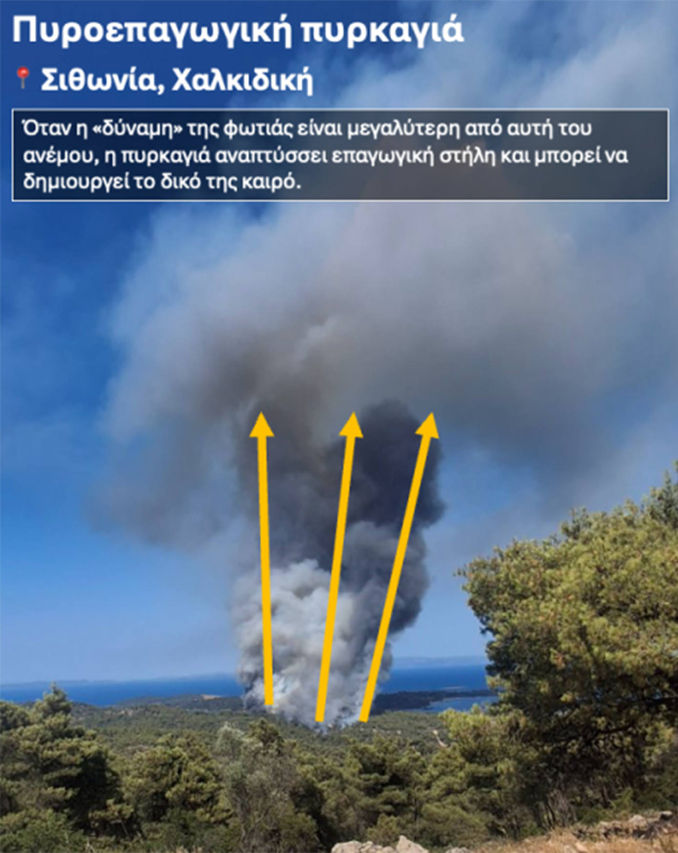 - Όταν η «δύναμη» της φωτιάς υπερισχύει, η πυρκαγιά δημιουργεί το δικό της καιρό (πυροεπαγωγικές πυρκαγιές).