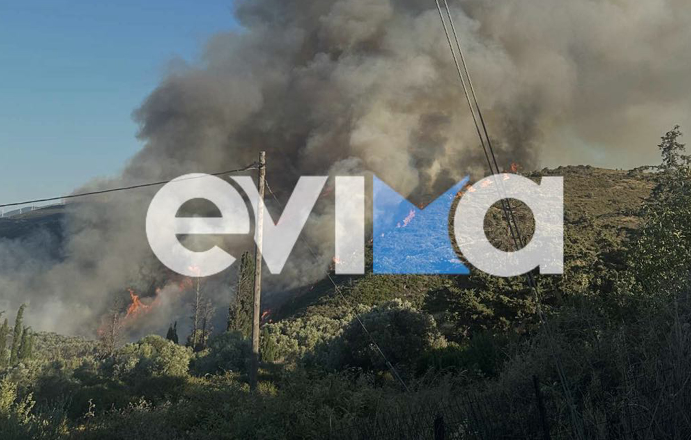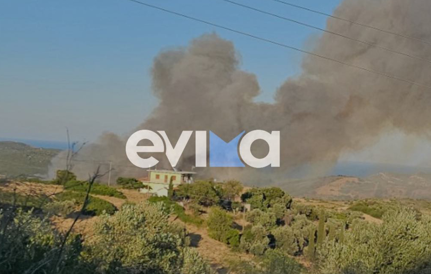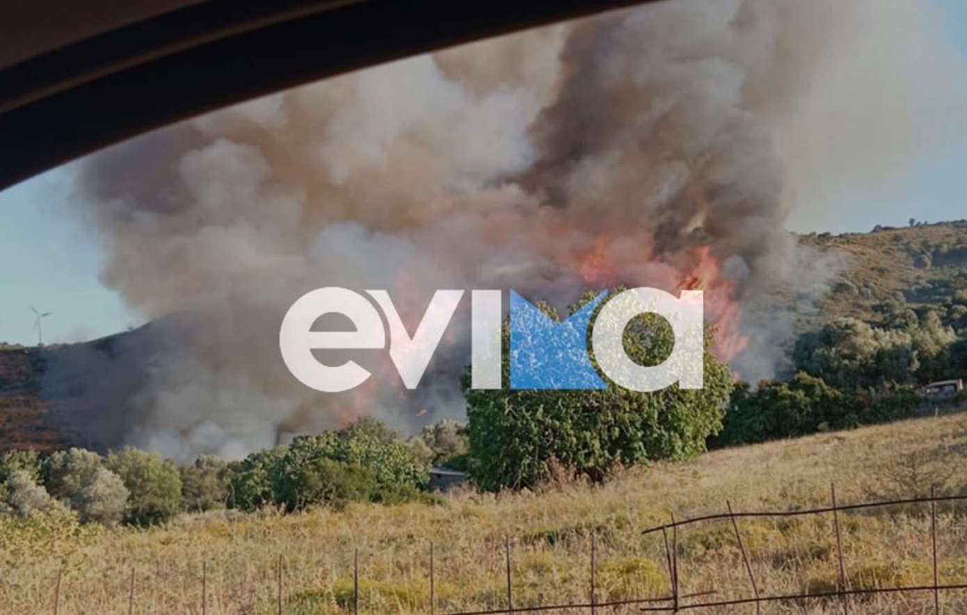 Η πυρκαγιά στα Μεσοχώρια του Δήμου Καρύστου στην Εύβοια καίει ανεξέλεγκτη, με τις πυροσβεστικές δυνάμεις να δίνουν τιτάνια μάχη με τις φλόγες.