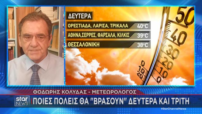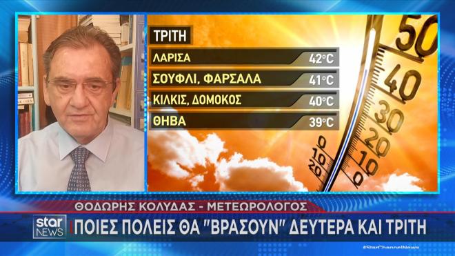 Όπως είπε ο Θοδωρής Κολυδάς στο κεντρικό δελτίο ειδήσεων του Star, ανάμεσα στις πόλεις που θα έχουν την περισσότερη ζέστη τη Δευτέρα είναι: