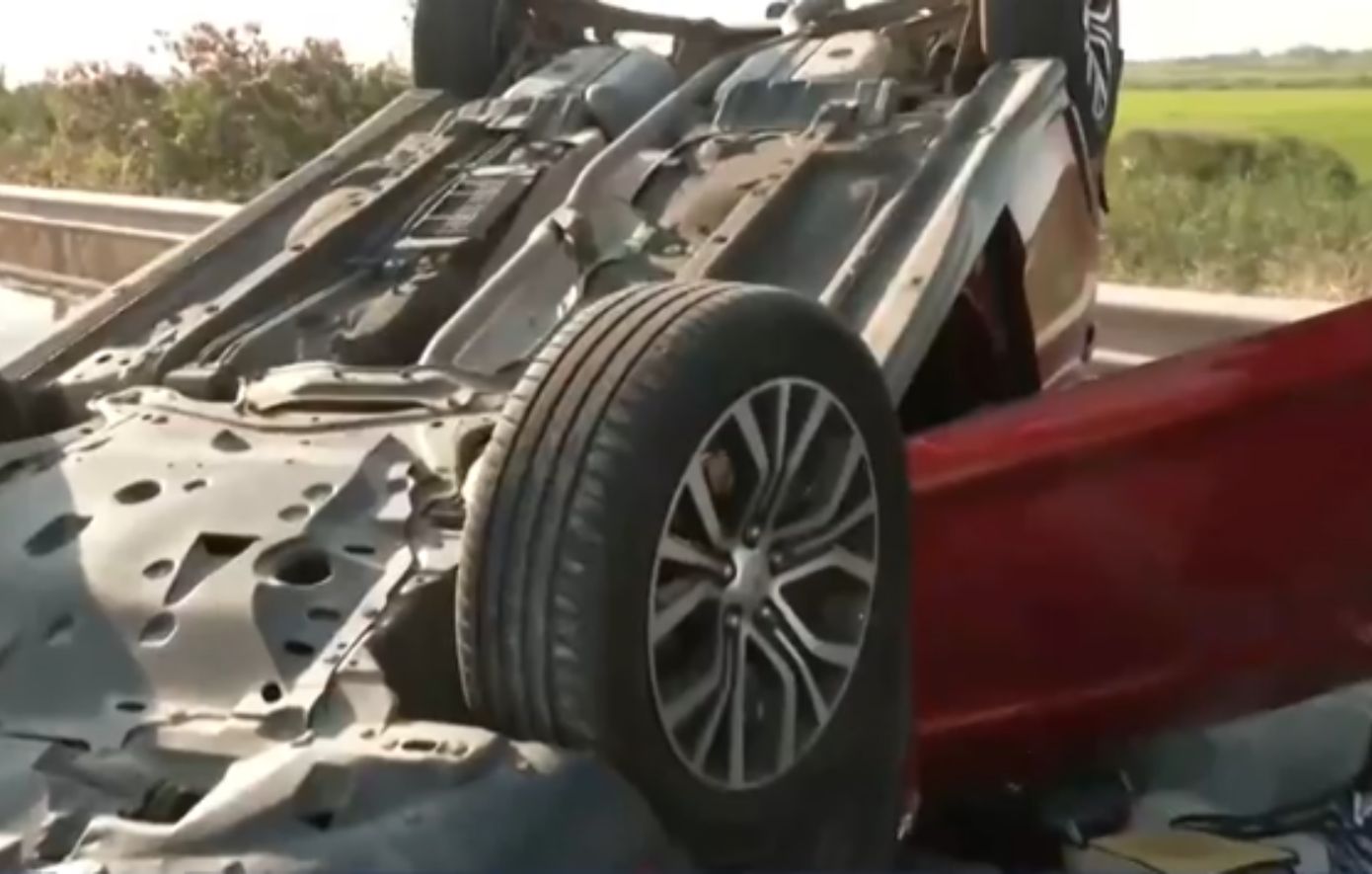 Από τη σφοδρή σύγκρουση, το αυτοκίνητο ανετράπη, ενώ το ρυμουλκούμενο κατέληξε σε παρακείμενο χωράφι.