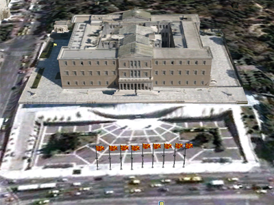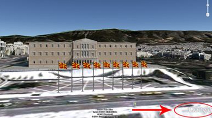 Χάκερ διείσδυσαν σήμερα στη γνωστή υπηρεσία της Google, «Google Earth», και ανάρτησαν μπροστά από τη Βουλή σημαίες της ΠΓΔΜ.