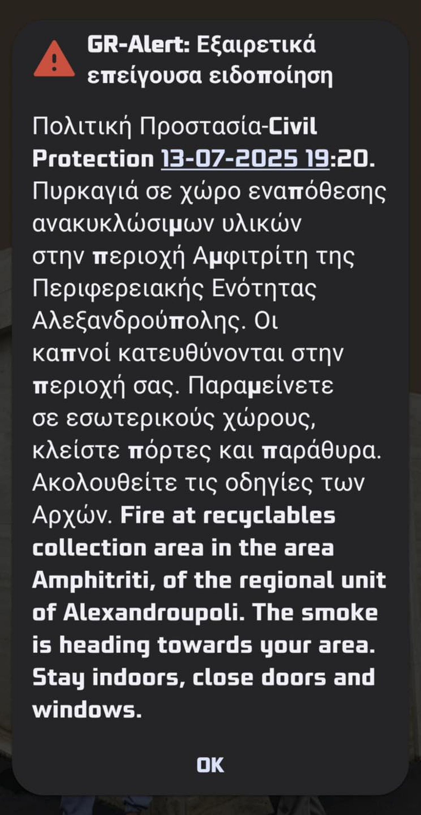 — Πυροσβεστικό Σώμα (@pyrosvestiki) July 13, 2025