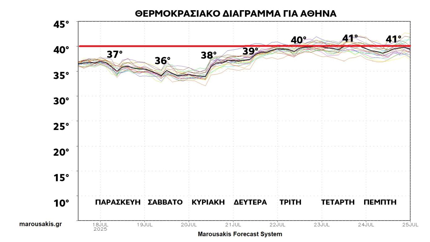 Οπότε μην τρομάζουμε διαβάζοντας για θερμοκρασίες μεγαλύτερες των 40° βαθμών, η μεγάλη διάρκεια μικρότερων θερμοκρασιακών τιμών δημιουργούν το πρόβλημα», τονίζει ακόμη στην ανάρτησή του ο κ. Μαρουσάκης.