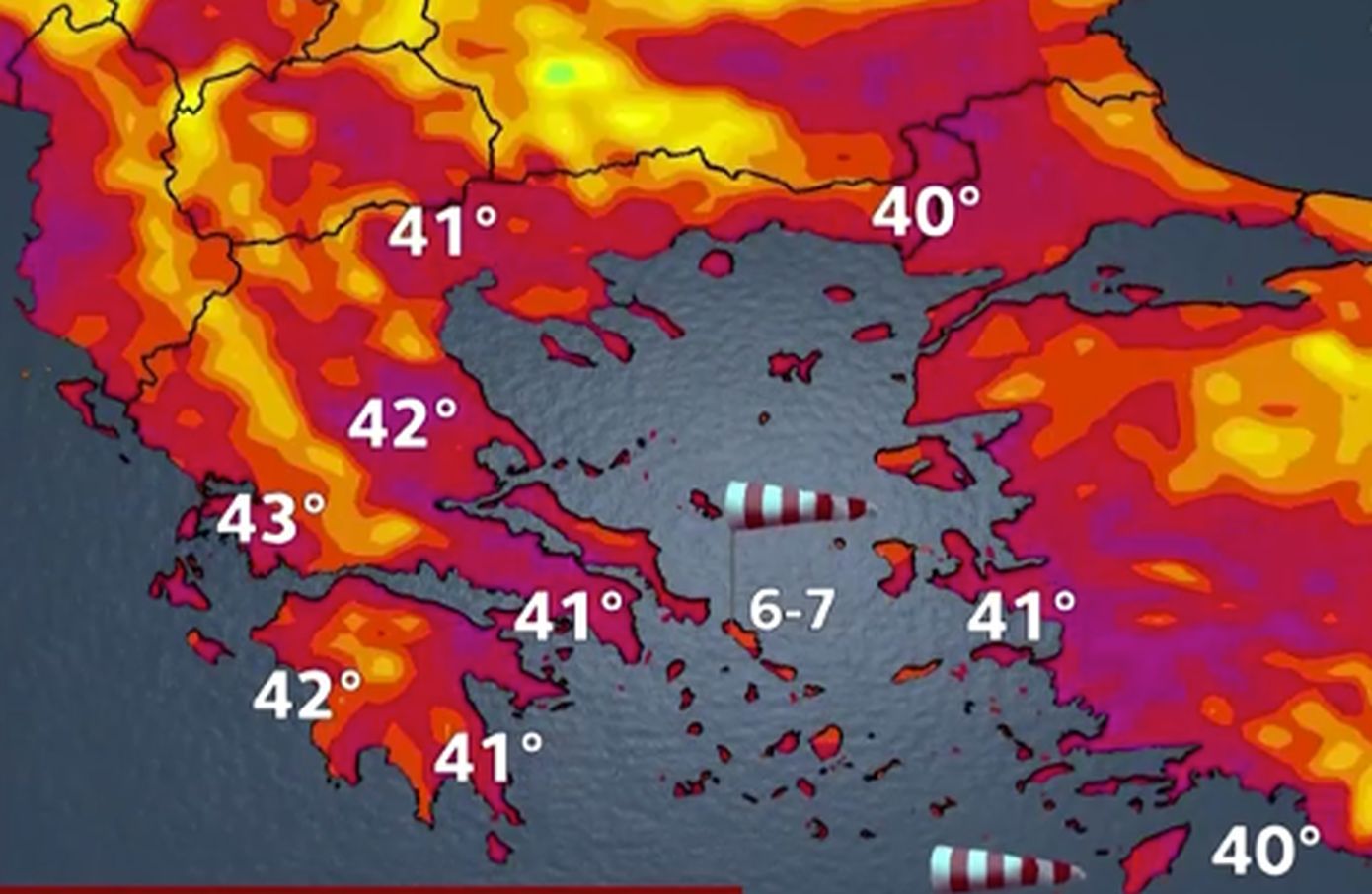 Αυτός ο καύσωνας θα συνδυαστεί και με μελτέμια στο Αιγαίο, ένας συνδυασμός που αυξάνει σημαντικά τον κίνδυνο πυρκαγιάς.