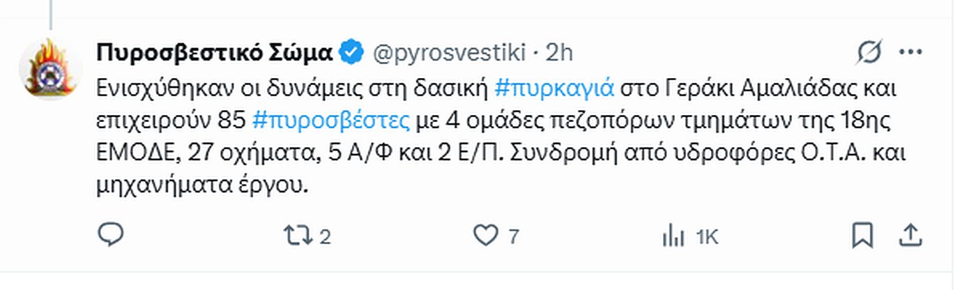 Παράλληλα, εστάλη προειδοποιητικό μήνυμα από το 112 στους κατοίκους της περιοχής, με οδηγίες για προληπτική απομάκρυνση και αυξημένη ετοιμότητα. Οι Αρχές ζητούν από τους πολίτες να ακολουθούν πιστά τις οδηγίες της Πολιτικής Προστασίας και να παραμένουν ψύχραιμοι.