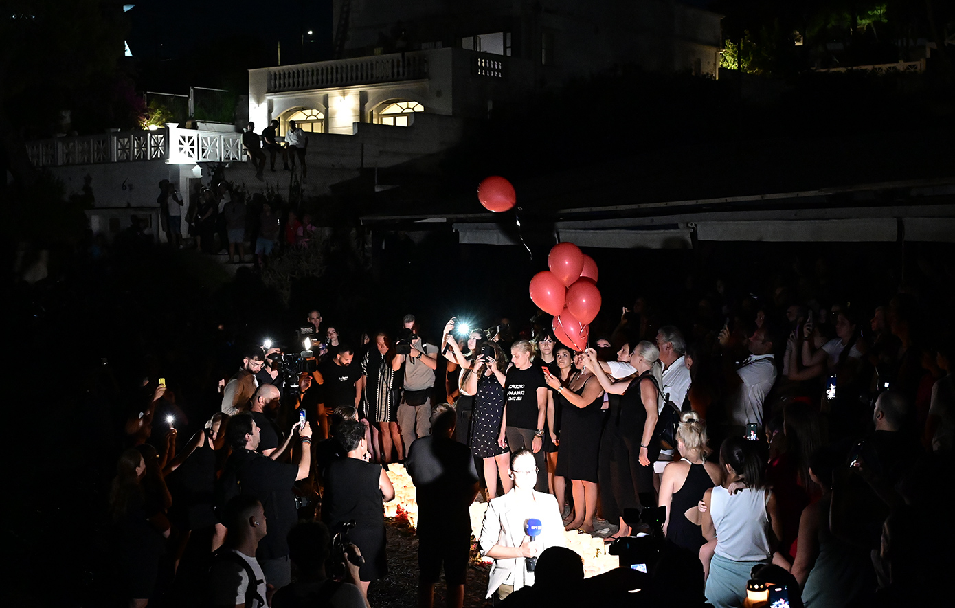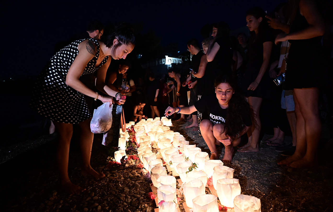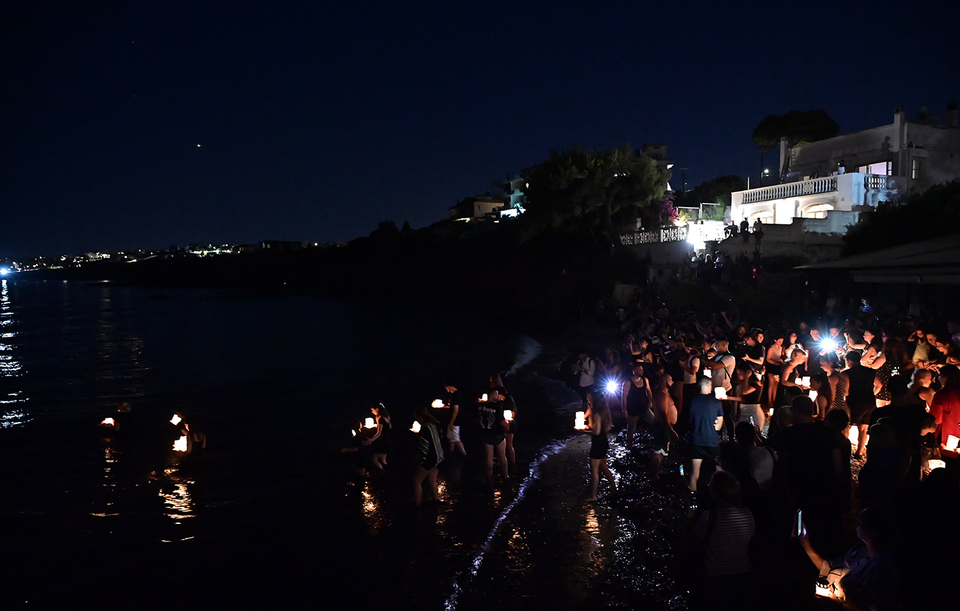 Η εκδήλωση κορυφώθηκε με τους συγγενείς να «απελευθερώνουν» στη θάλασσα φαναράκια, ίσα σε αριθμό με τα θύματα της μεγάλης τραγωδίας και να φωνάζουν «αθάνατοι».