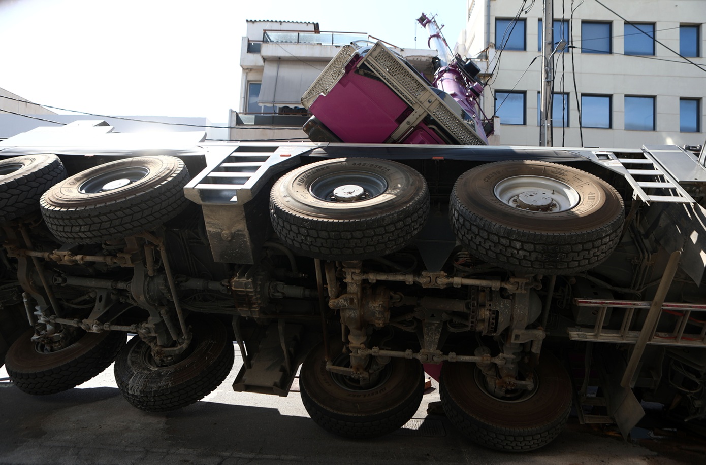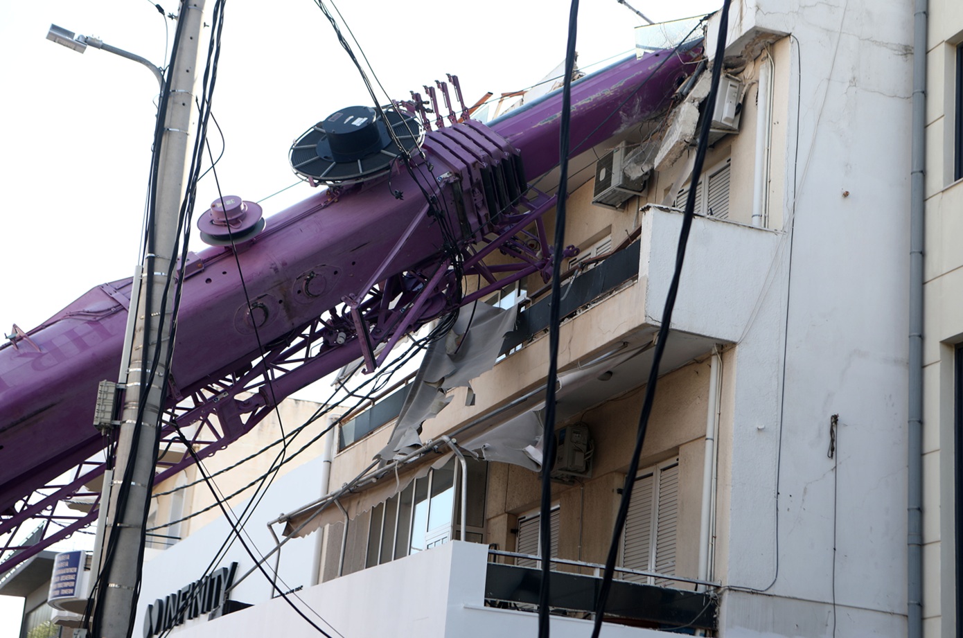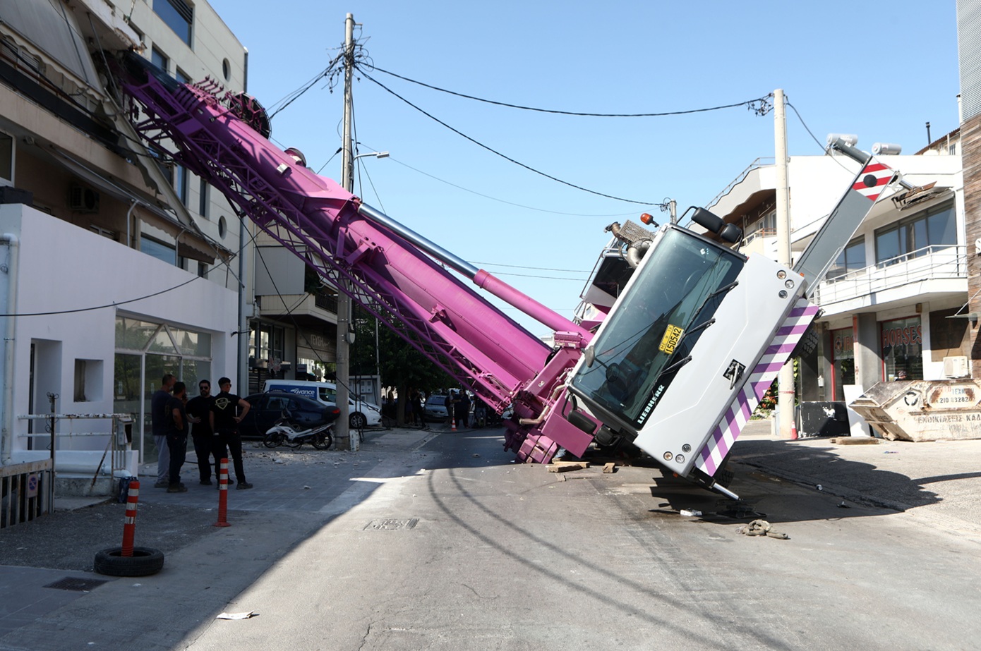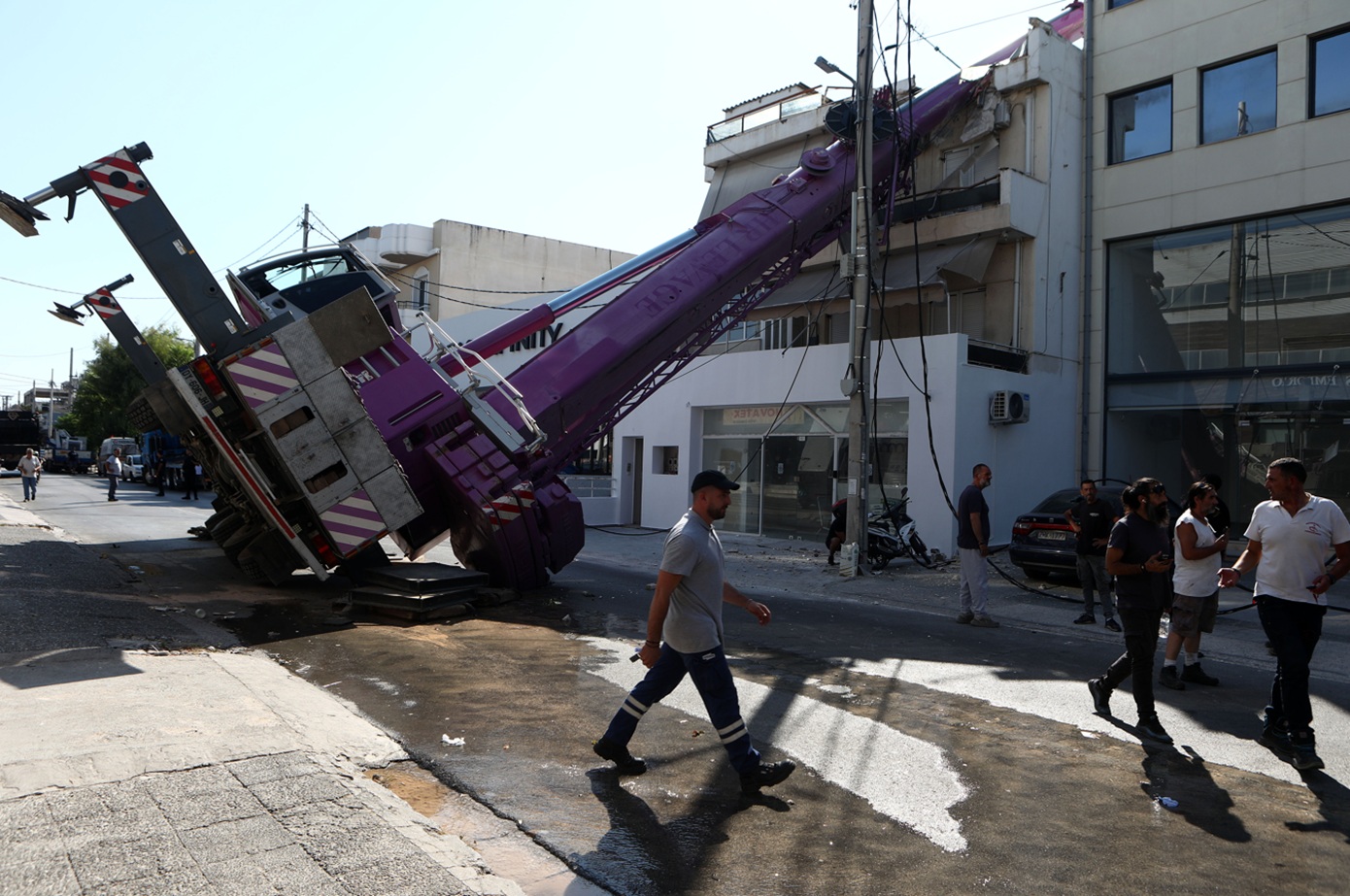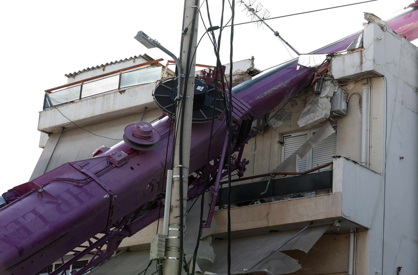 Το περιστατικό συνέβη όταν το βαρύ μηχάνημα που εκτελούσε εργασίες απέναντι από το σπίτι, έγειρε εξαιτίας της υποχώρησης του εδάφους στο σημείο λόγω του βάρους.