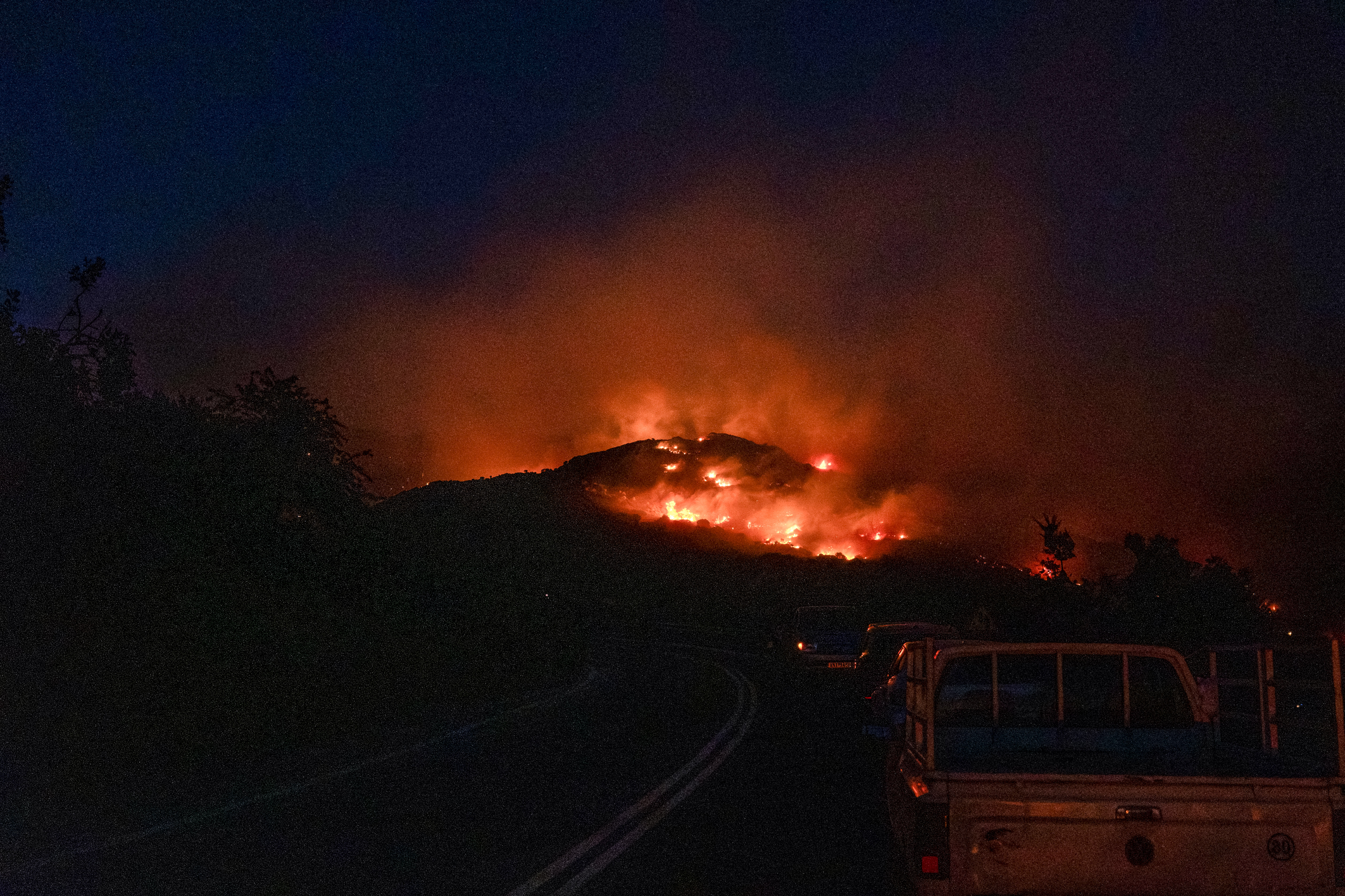 Η μάχη με τις φλόγες θα συνεχιστεί όλη τη νύχτα καθώς, παρά την πτώση της θερμοκρασίας, οι άνεμοι συνεχίζουν να δυσχεραίνουν το έργο των πυροσβεστών.
