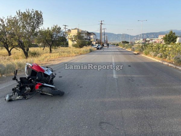 Σφοδρή σύγκρουση αυτοκίνητου με μικρού κυβισμού μοτοσυκλέτα σημειώθηκε λίγο πριν τις 6:00′ το πρωί της Κυριακής στην είσοδο της Λαμίας και συγκεκριμένα στον παράδρομο, λίγο πιο πάνω από το συγκρότημα αυτοκινήτων «Καρέλλης».