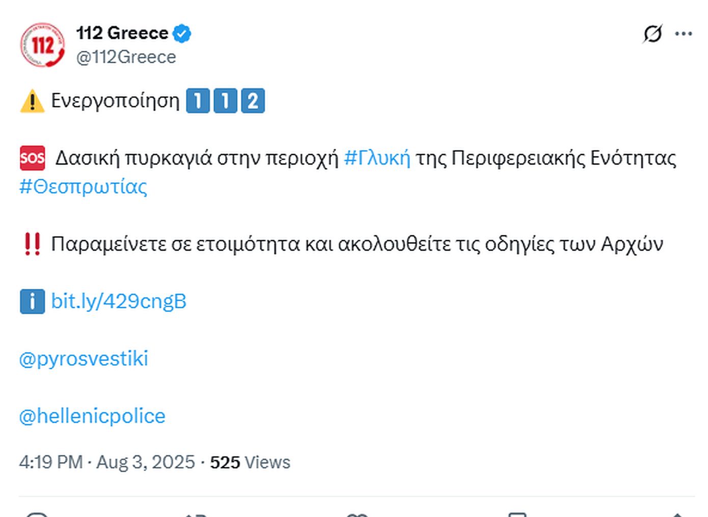 — Πυροσβεστικό Σώμα (@pyrosvestiki) August 3, 2025