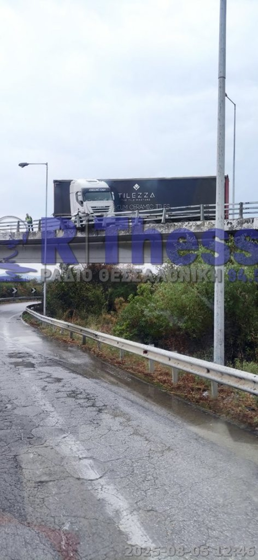 Τροχαίο σημειώθηκε λίγο νωρίτερα στην Εθνική Οδό Αθηνών – Θεσσαλονίκης (ΠΑΘΕ), στο ρεύμα ανόδου προς Θεσσαλονίκη, στο ύψος της γέφυρας του Γαλλικού Ποταμού, όταν νταλίκα εξετράπη της πορείας της κάτω από άγνωστες συνθήκες.