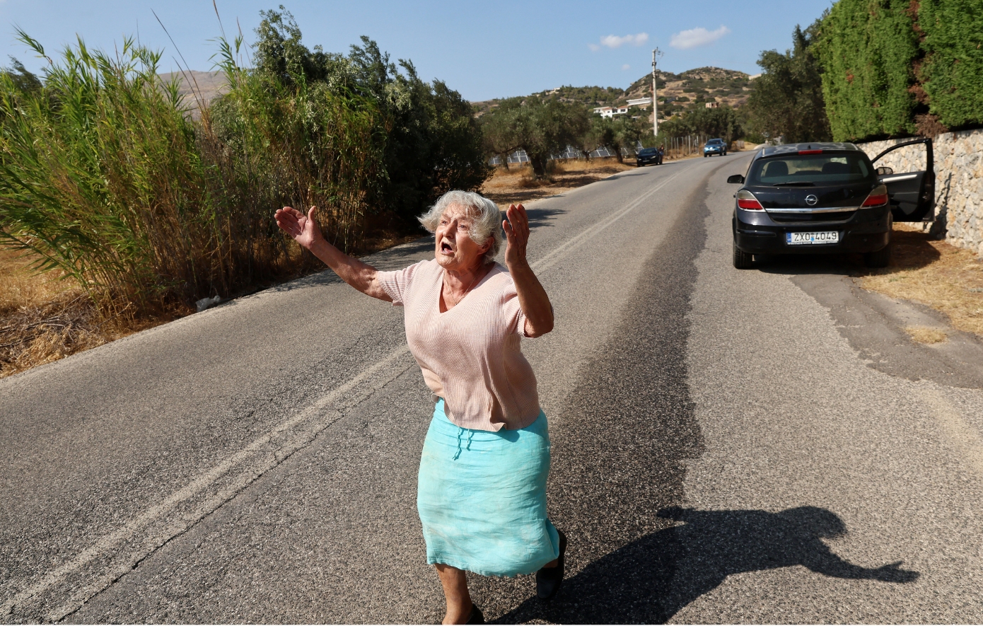 Η απόγνωση μιας γυναίκας μέσα στις φλόγες της Κερατέας αποτυπώνεται σε μία συγκλονιστική φωτογραφία.