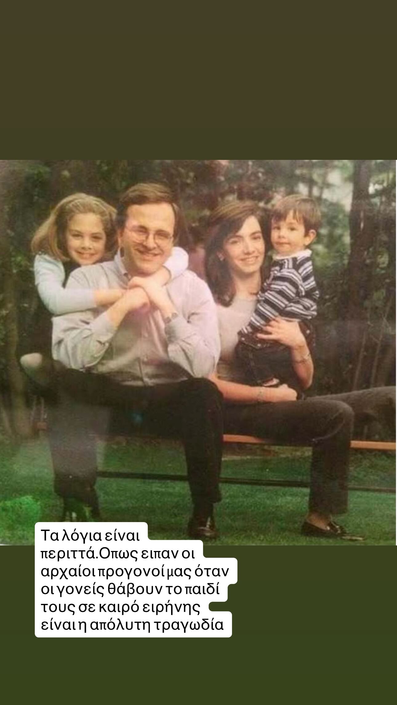 «Τα λόγια είναι περιττά. Όπως είπαν οι αρχαίοι προγονοί μας, όταν οι γονείς θάβουν το παιδί τους σε καιρό ειρήνης είναι η απόλυτη τραγωδία.