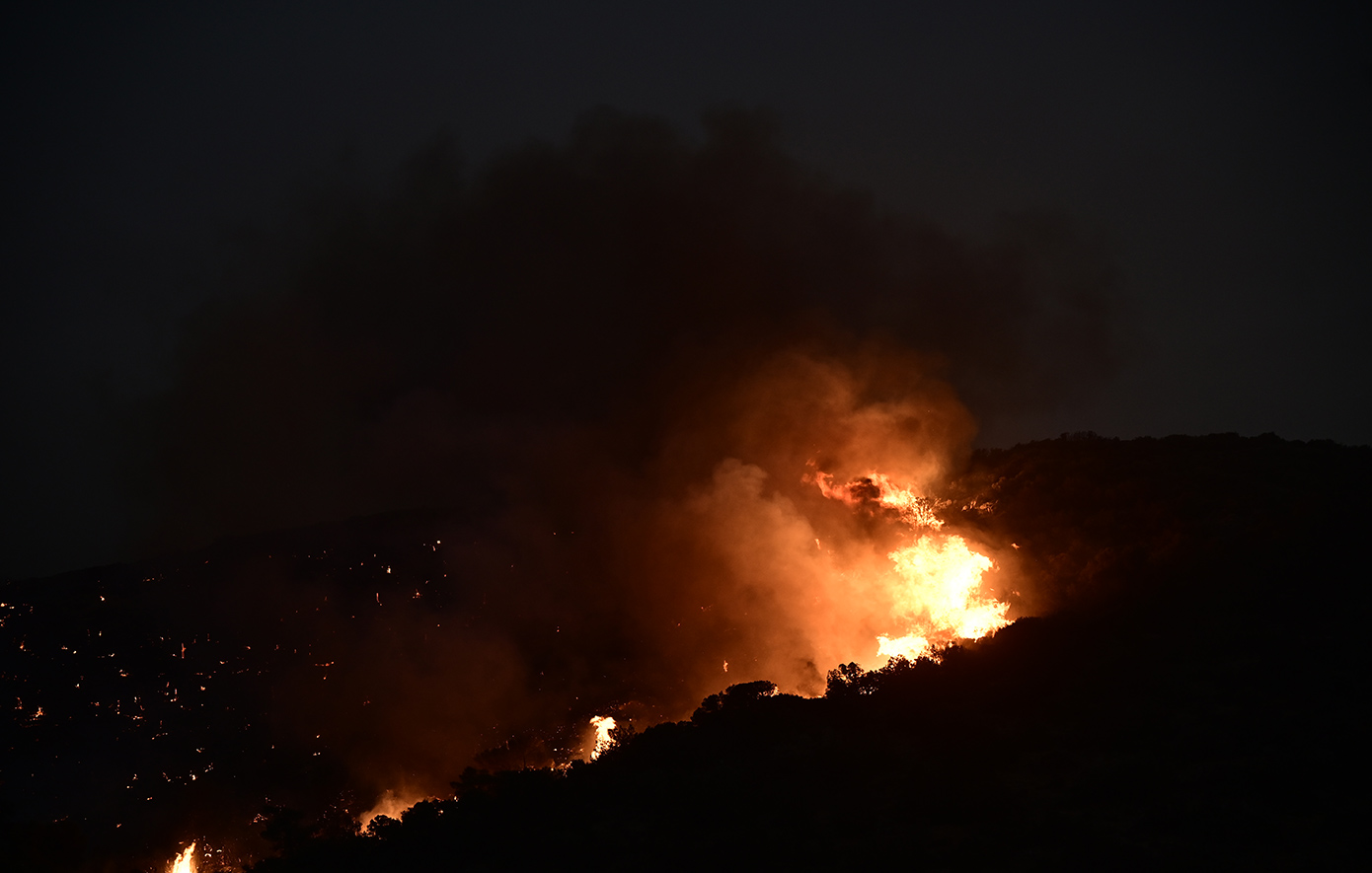 Ακόμη και μετά τη δύση του ηλίου, τα εναέρια μέσα δεν είχαν εγκαταλείψει τη μάχη για την κατάσβεση της πυρκαγιάς, αφού οι ιδιαίτερα ισχυροί άνεμοι δεν επιτρέπουν στους πυροσβέστες να ελέγξουν τη φωτιά χωρίς τη χρήση αεροσκαφών.