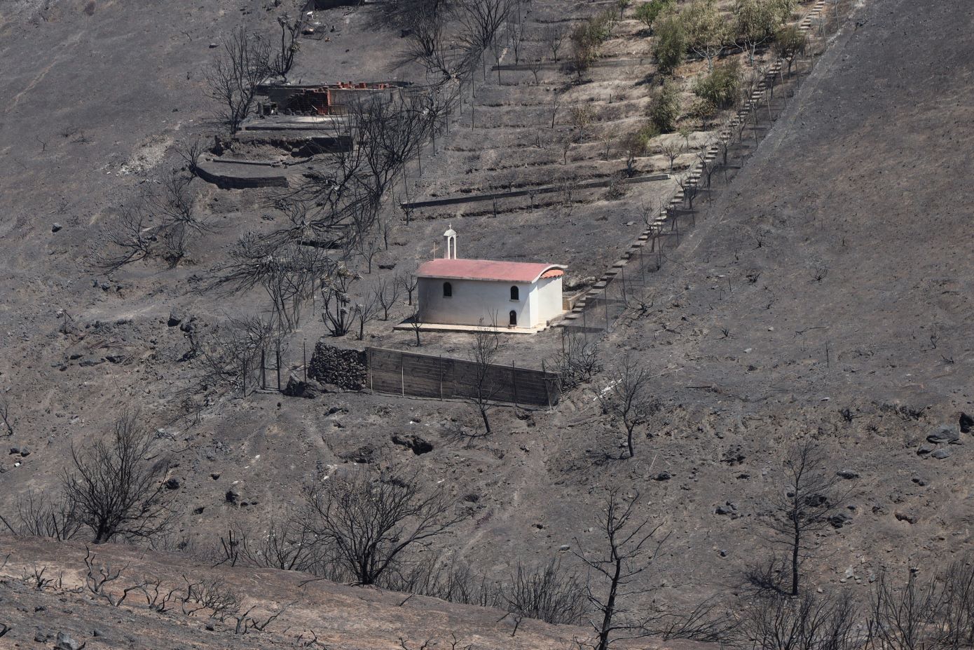 Οι εικόνες που κατεγράφησαν αποτυπώνουν το μέγεθος της καταστροφής, δείχνοντας τα σημάδια της πύρινης λαίλαπας και τη βαθιά απόγνωση των κατοίκων που είδαν τον κόπο μιας ζωής να γίνεται στάχτη.