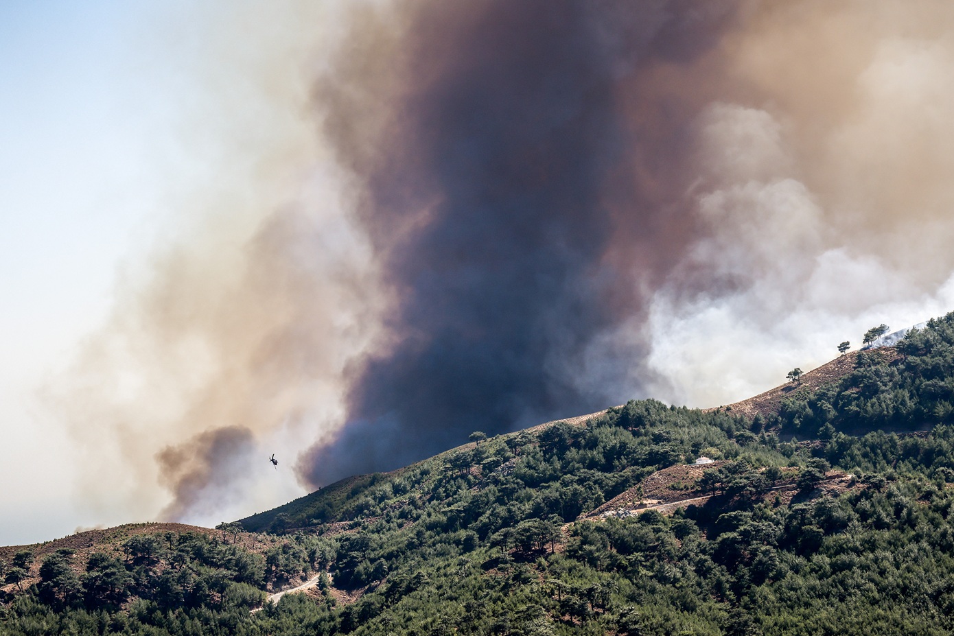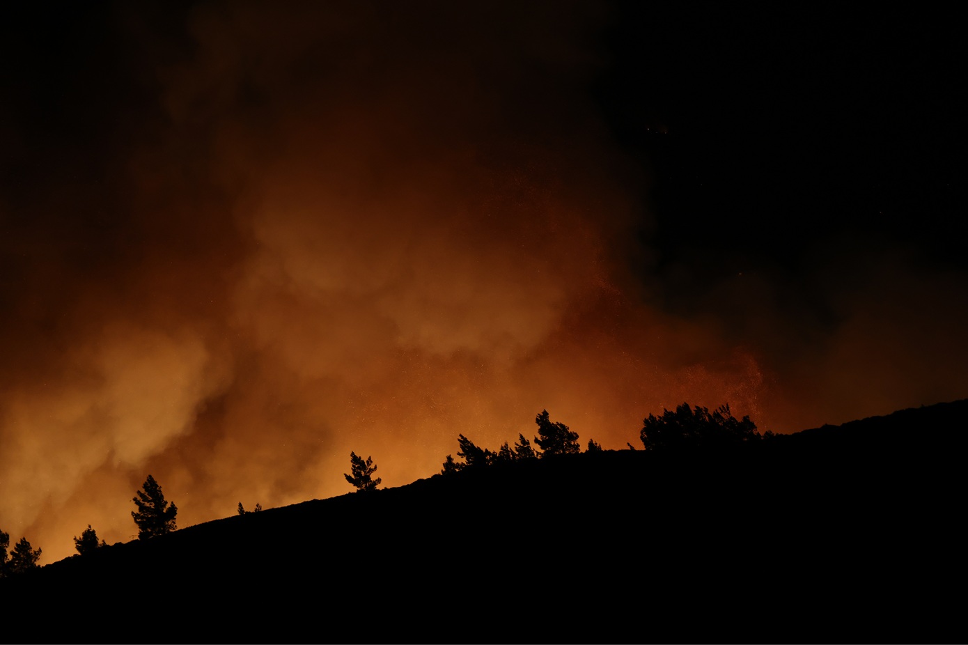 Στην περιοχή το θερμικό φορτίο έχει δημιουργήσει κόκκινο πέπλο καπνού.