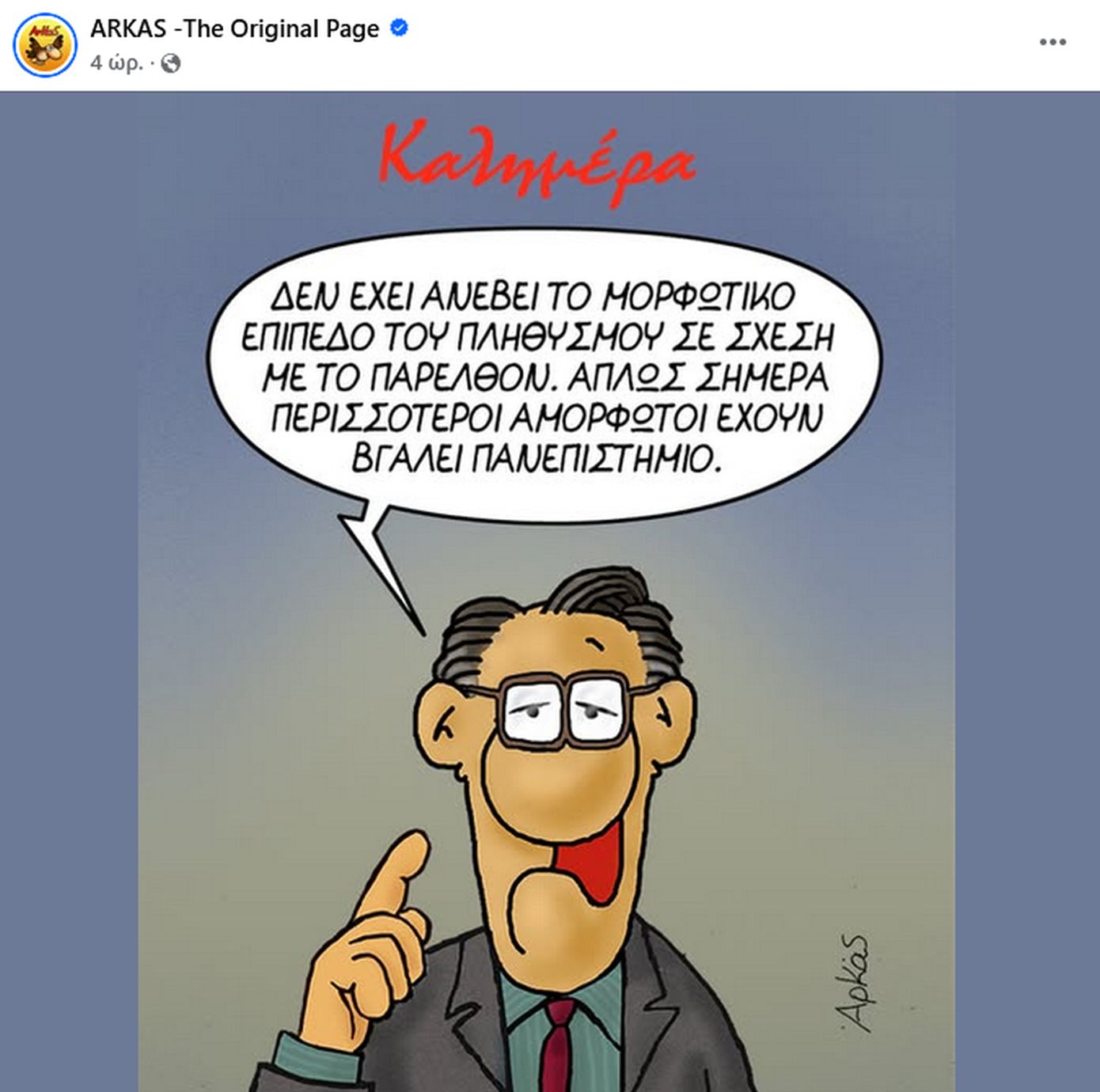 «Δεν έχει ανέβει το μορφωτικό επίπεδο του πληθυσμού σε σχέση με το παρελθόν. Απλώς σήμερα περισσότεροι αμόρφωτοι έχουν βγάλει πανεπιστήμιο».