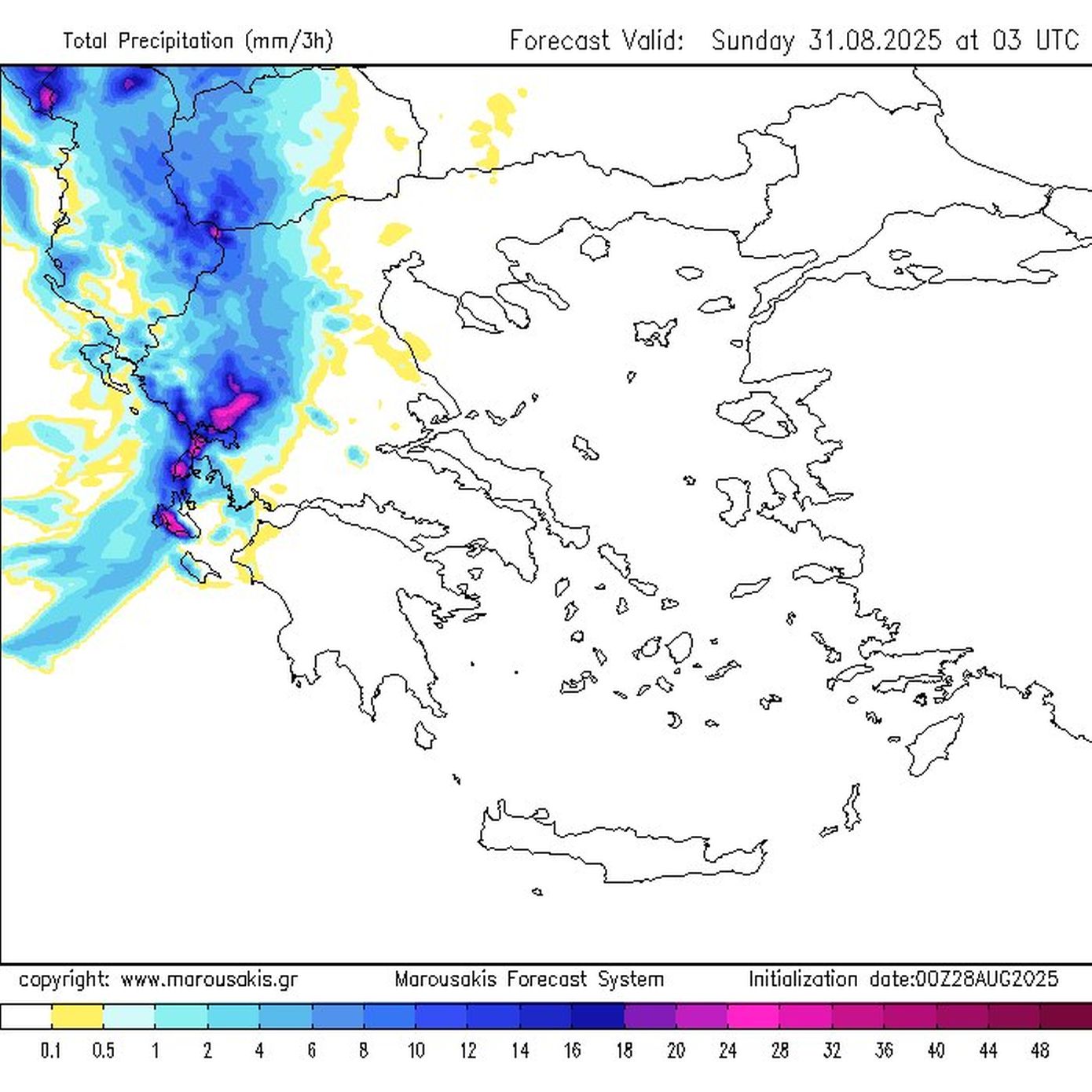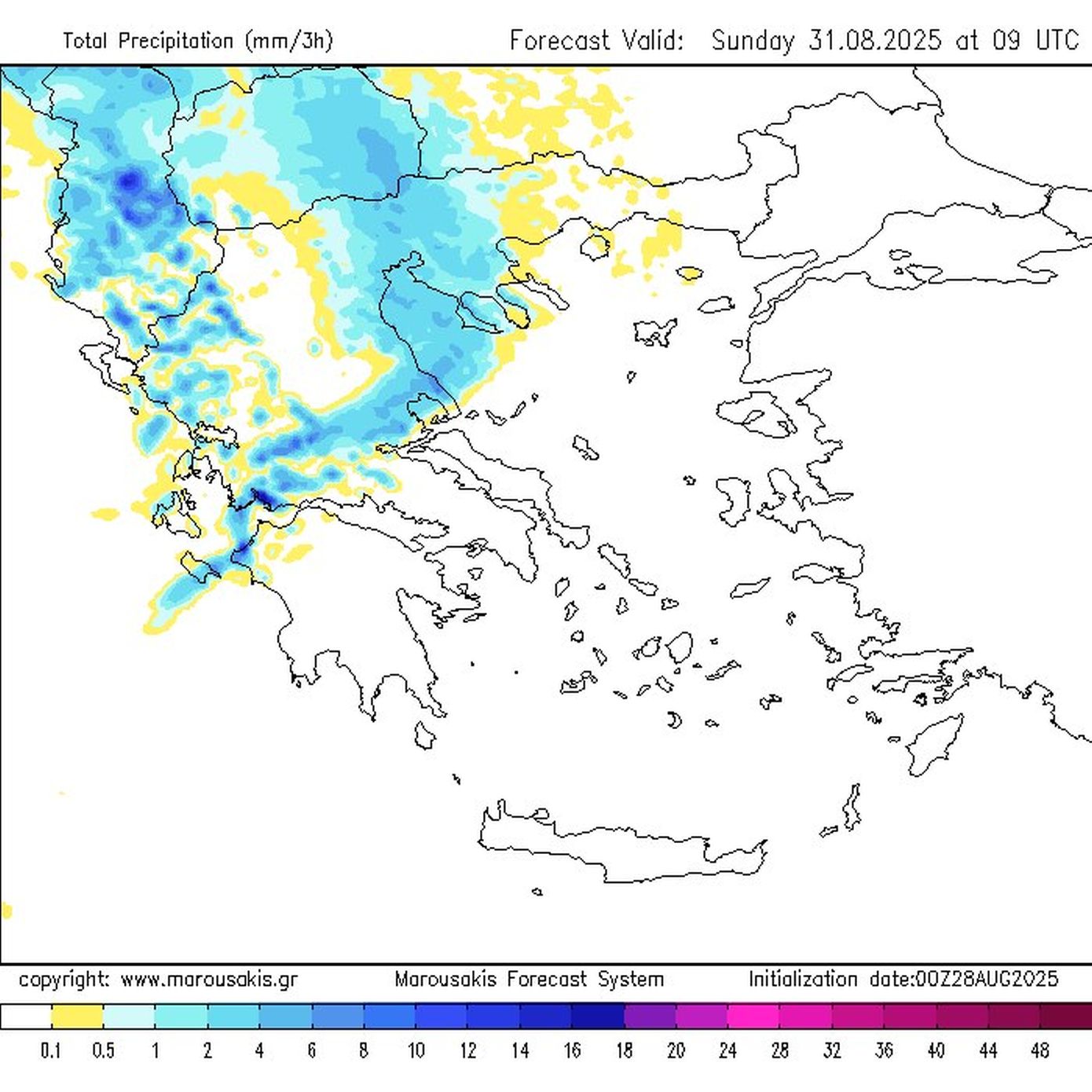 Βροχές και καταιγίδες από το απόγευμα του Σαββάτου αρχικά στα βορειοδυτικά και μέσα στην Κυριακή σε αρκετές περιοχές της δυτικής, κεντρικής και βόρειας χώρας. Επισημαίνεται ότι τα φαινόμενα αυτά και με έμφαση τα δυτικά – βόρεια – βορειοδυτικά τμήματα θα είναι τοπικά ισχυρά και επικίνδυνα, ενώ είναι πολύ πιθανό να συνοδεύονται από χαλάζι και μεγάλη συχνότητα κεραυνών.