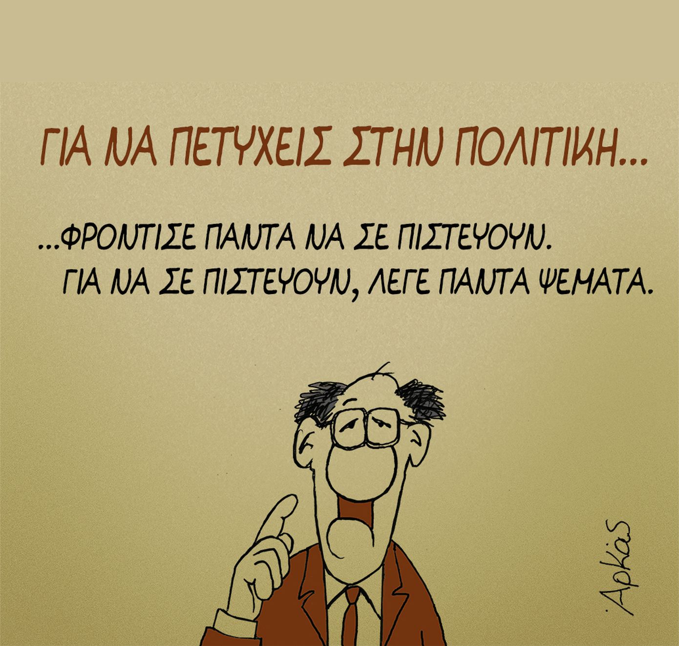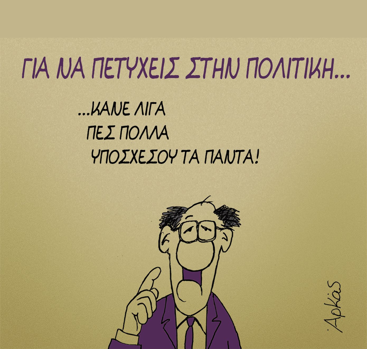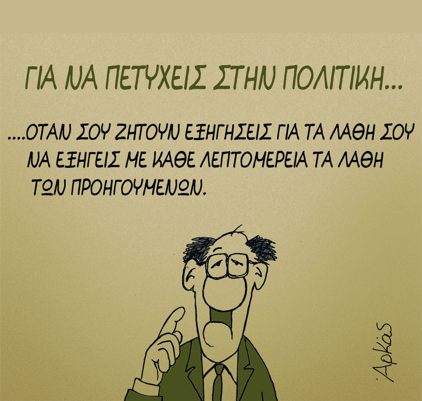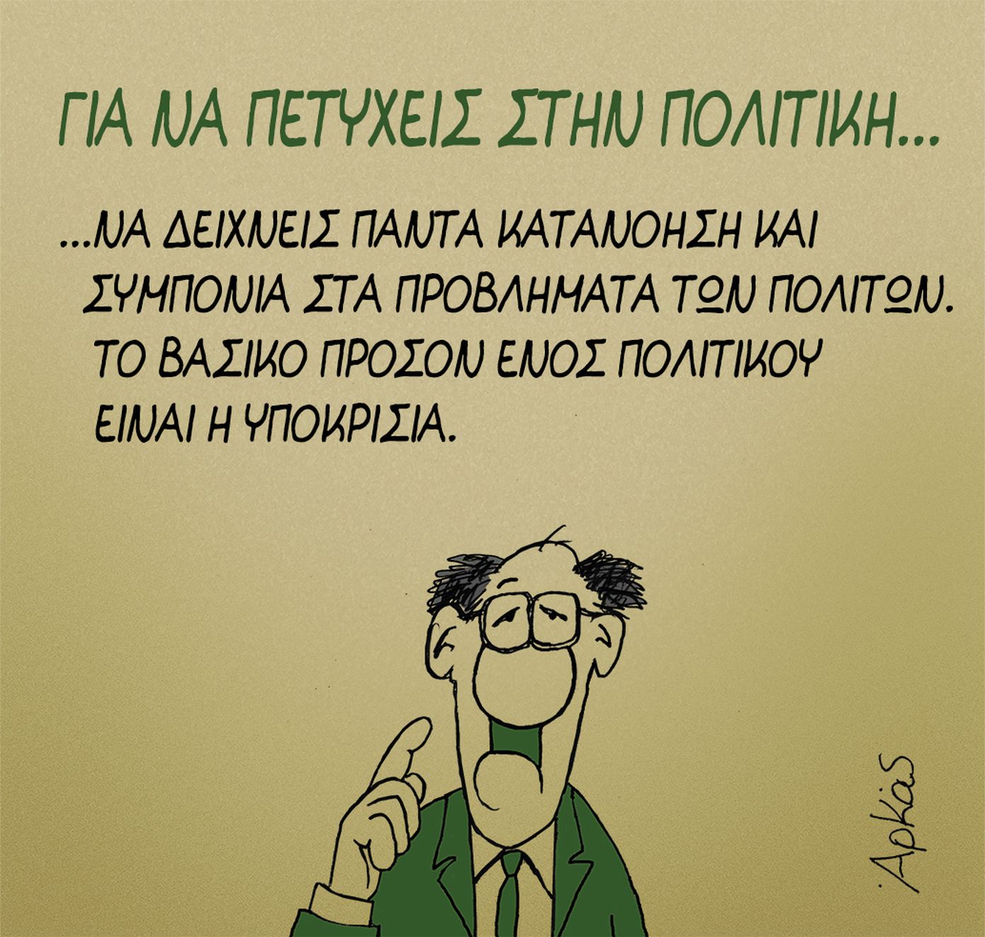 Τη δική του «Καλημέρα» είπε και σήμερα Παρασκευή 29/8 ο γνωστός σκιτσογράφος Αρκάς δίνοντας συμβουλές για το πώς μπορεί κάποιος να πετύχει στην πολιτική.