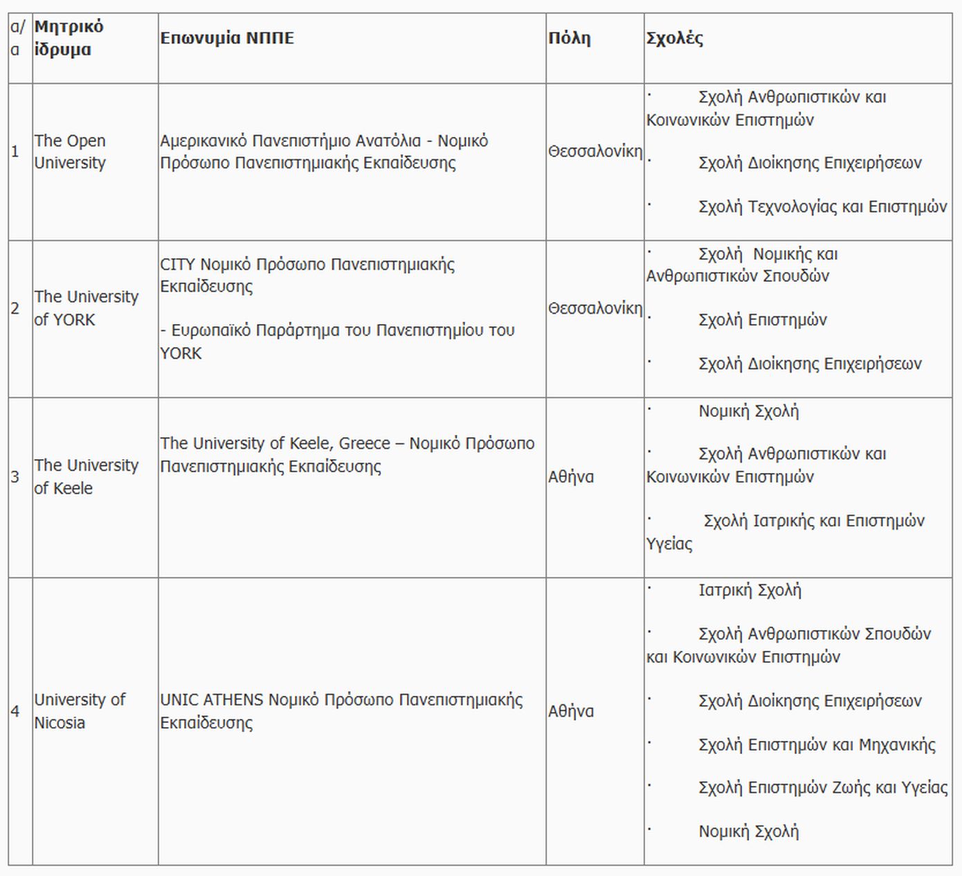 Τα τέσσερα μη κρατικά πανεπιστήμια που πήραν άδεια και θα λειτουργήσουν κατά την ακαδημαϊκή χρονιά 2025-2026, ανακοινώθηκαν σήμερα από το υπουργείο Παιδείας.