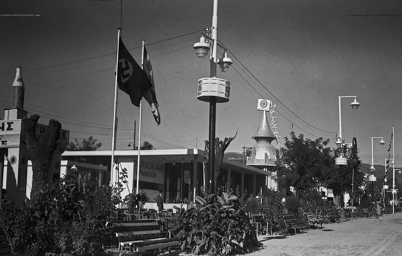 Το 1939, η Θεσσαλονίκη ετοιμαζόταν για την 14η ΔΕΘ, όταν οι πρώτες σκιές του πολέμου άρχισαν να πυκνώνουν πάνω από την Ευρώπη. Η Γερμανία εισέβαλε στην Πολωνία, μα παρ’ όλα αυτά συμμετείχε κανονικά στην Έκθεση με το δικό της περίπτερο, σαν μια παράδοξη στιγμή όπου η πολιτική πραγματικότητα και η διεθνής προβολή συνυπήρχαν, έστω και για λίγο. Το 1940, η τελευταία προπολεμική διοργάνωση στις νέες εγκαταστάσεις (22 Σεπτεμβρίου – 22 Οκτωβρίου) φιλοξένησε τέσσερις επίσημες ξένες συμμετοχές (Γερμανία, Γιουγκοσλαβία, Βουλγαρία, Τουρκία). Ήταν μια γιορτή που έμελλε να κοπεί απότομα. Λίγες μέρες μετά το κλείσιμο, ο πόλεμος έφτασε και εδώ. Τα περίπτερα και τα εκθέματα εγκαταλείφθηκαν βιαστικά, λεηλατήθηκαν και κατέληξαν στα χέρια των γερμανικών στρατευμάτων.