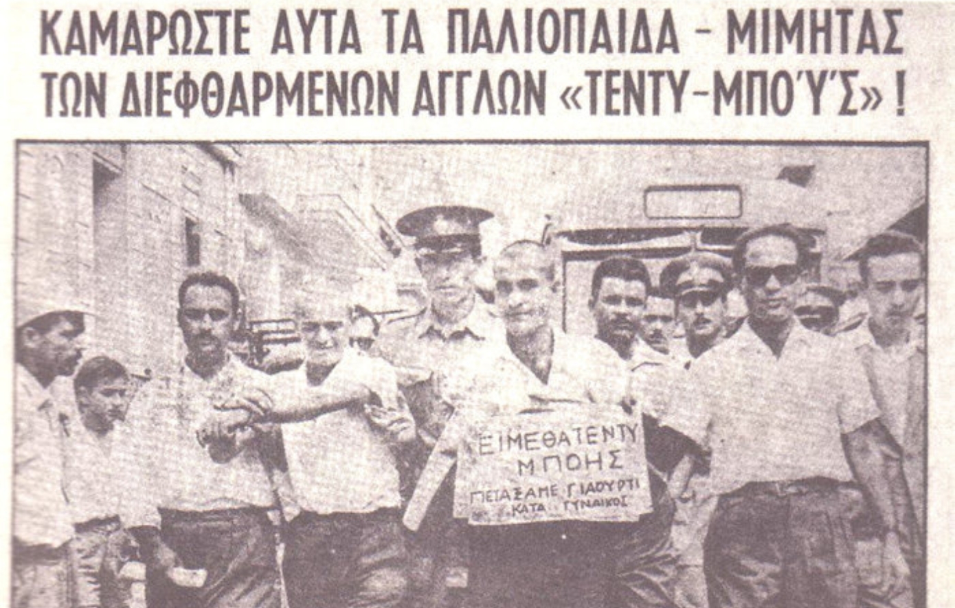 1958: Τίθεται σε ισχύ στην Ελλάδα, από την κυβέρνηση Κωνσταντίνου Καραμανλή ο νόμος 4000/1958 «Περί Τεντιμποϊσμού», ο οποίος επιβάλλει το κούρεμα «με την ψιλή» και τη διαπόμπευση των παραβατών, προκαλώντας το κοινό αίσθημα.