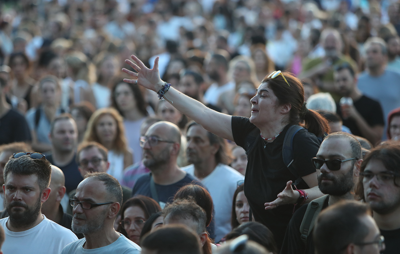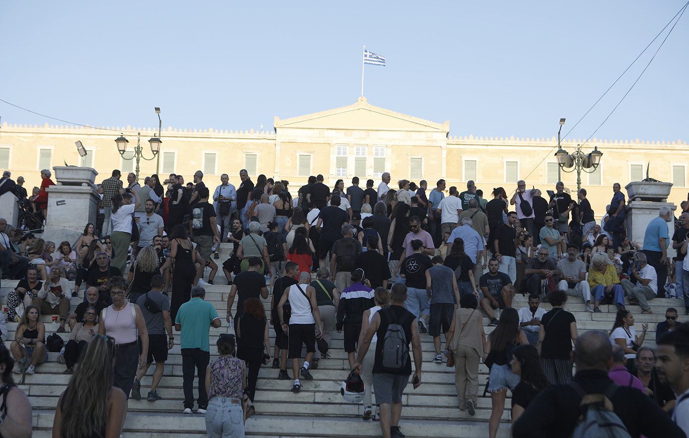 Πλήθος κόσμου ξεκίνησε να συγκεντρώνεται από τις 19:00 στην πλατεία Συντάγματος ζητώντας να αποδοθεί δικαιοσύνη για τα Τέμπη.