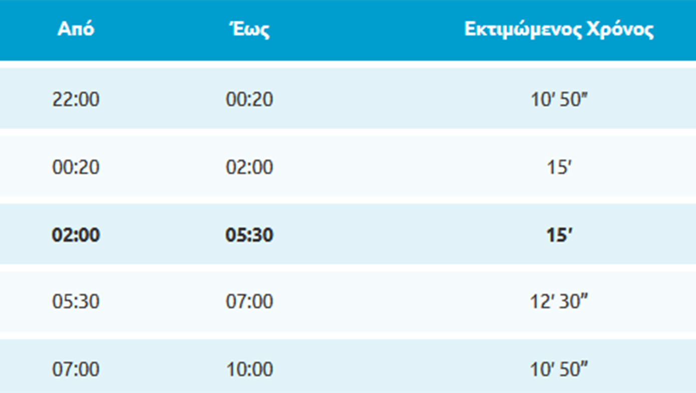 Συχνότητες διέλευσης γραμμής 3 του Μετρό κάθε Σάββατο από 22:00 έως 10:00