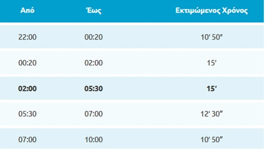 Συχνότητες διέλευσης γραμμής 3 του μετρό κάθε Σάββατο από 22:00 έως 10:00