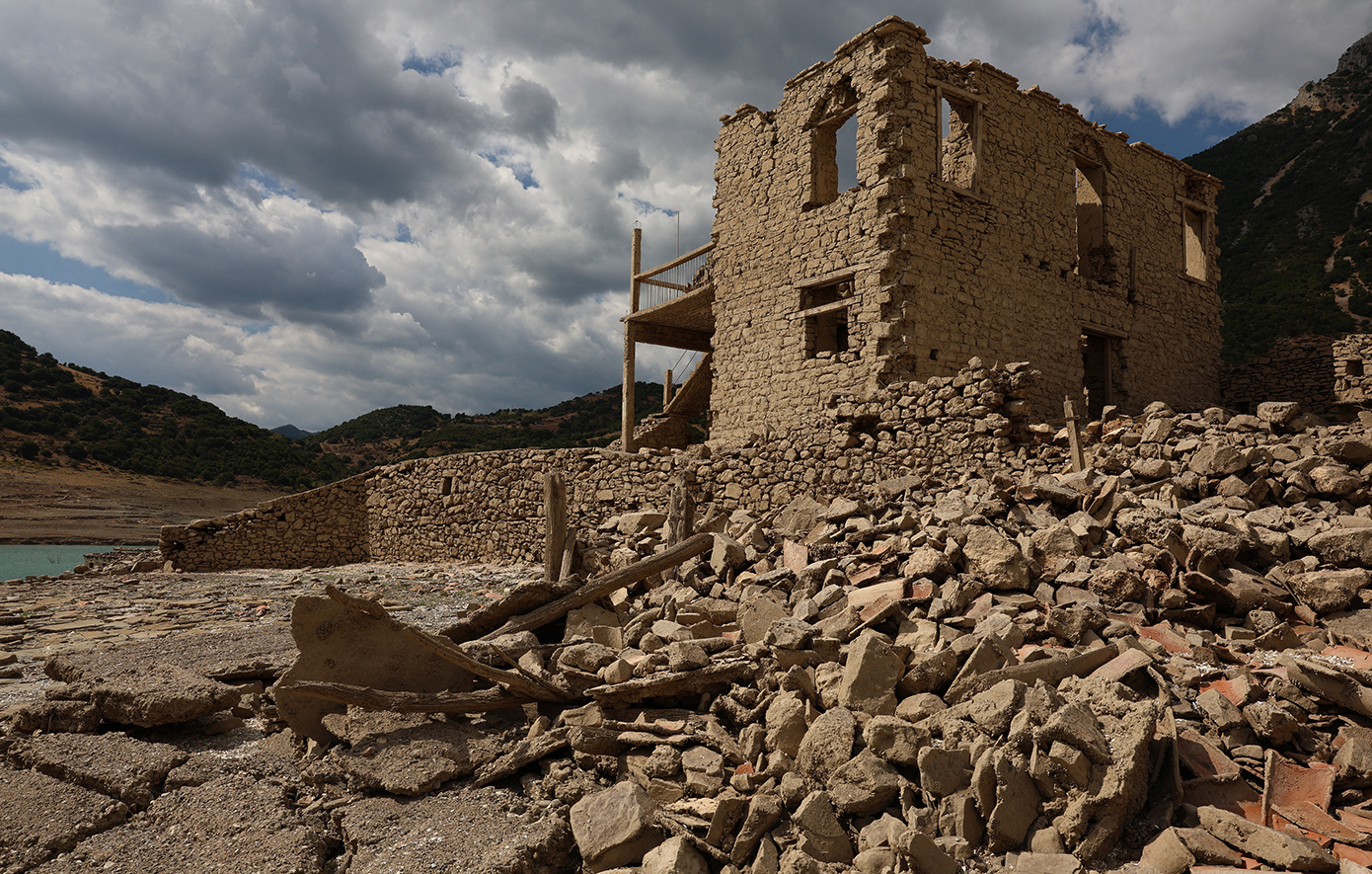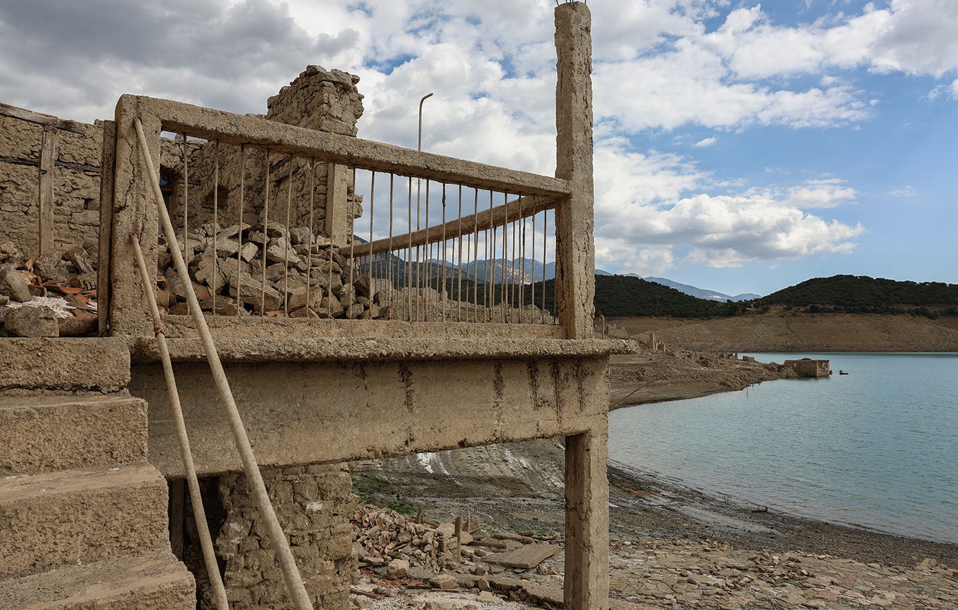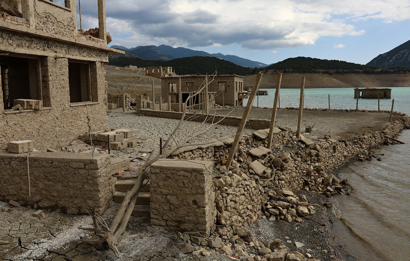 Ολόκληρα σπίτια, πέτρινα κτίσματα, δρόμοι και υπολείμματα του παλιού οικιστικού ιστού αποκαλύφθηκαν ξανά, προσφέροντας ένα εντυπωσιακό -αλλά και ανησυχητικό- θέαμα. Οι εικόνες από την περιοχή είναι αποκαλυπτικές, καθώς η ξηρασία «ξεσκεπάζει» την ιστορία που για χρόνια ήταν κρυμμένη κάτω από τα νερά.