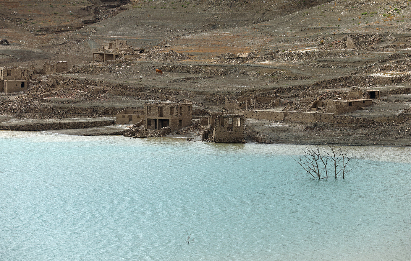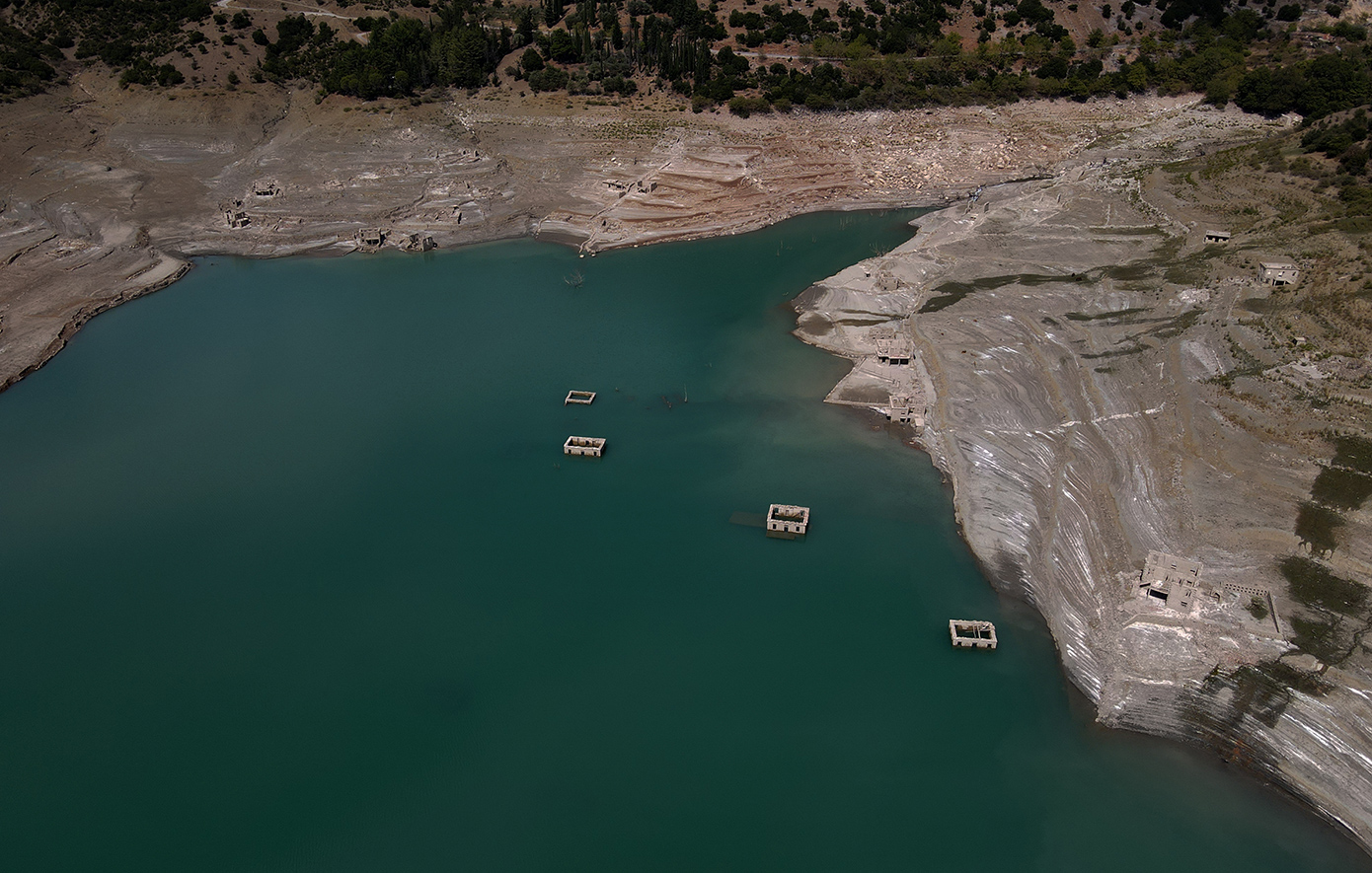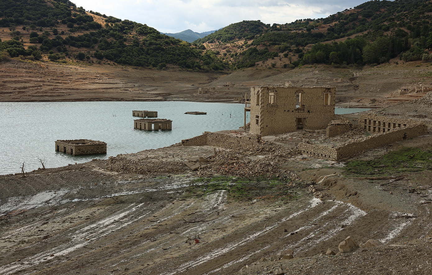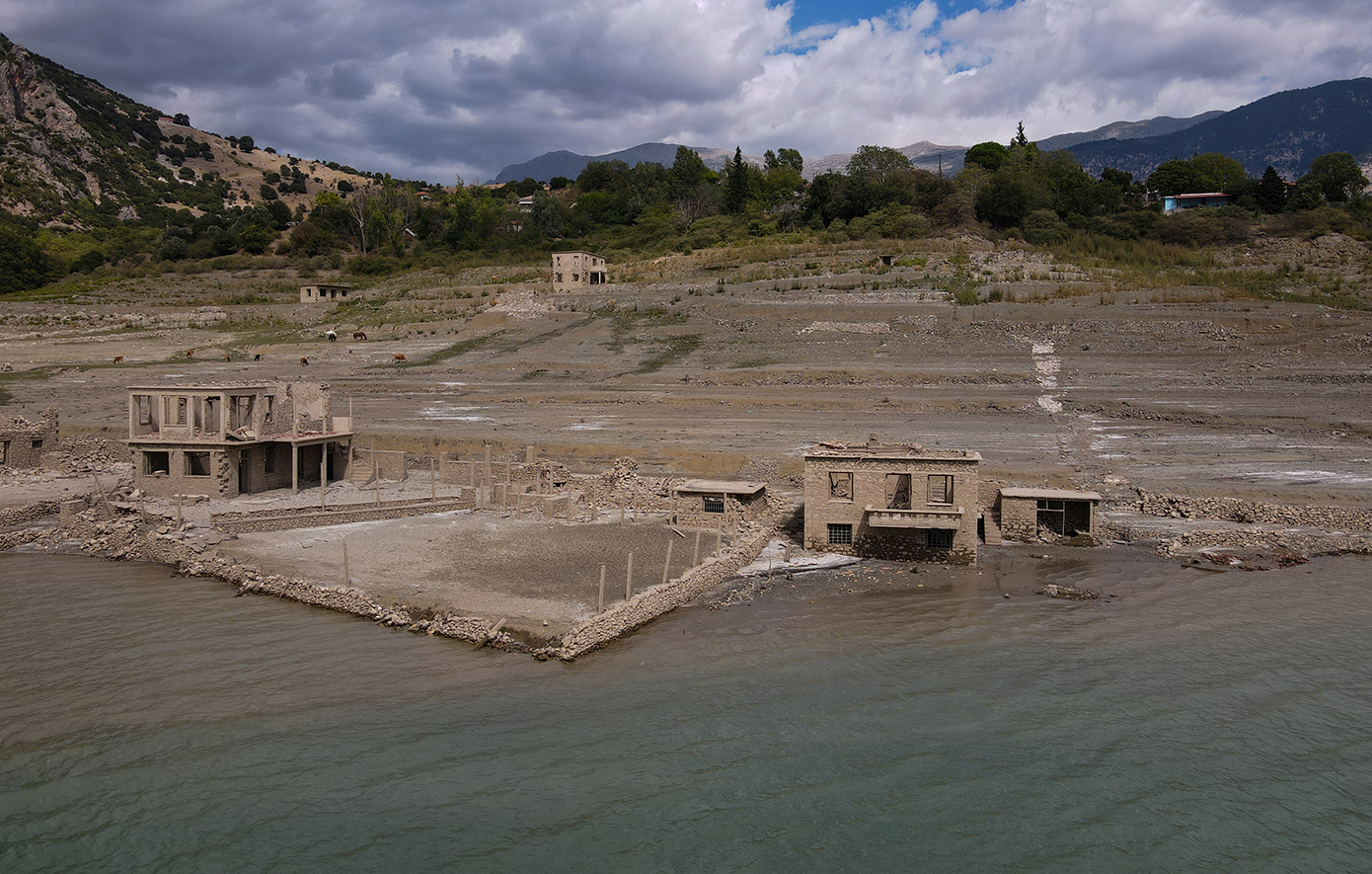 Ολόκληρα σπίτια, πέτρινα κτίσματα, δρόμοι και υπολείμματα του παλιού οικιστικού ιστού αποκαλύφθηκαν ξανά, προσφέροντας ένα εντυπωσιακό -αλλά και ανησυχητικό- θέαμα. Οι εικόνες από την περιοχή είναι αποκαλυπτικές, καθώς η ξηρασία «ξεσκεπάζει» την ιστορία που για χρόνια ήταν κρυμμένη κάτω από τα νερά.