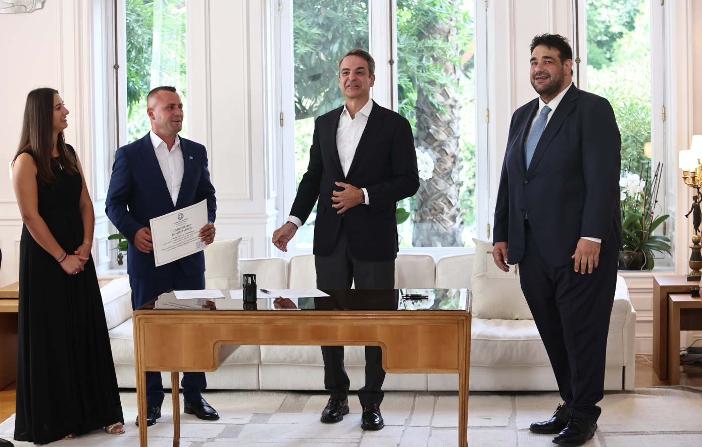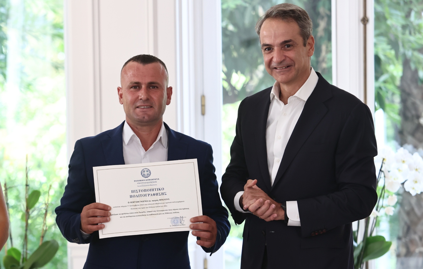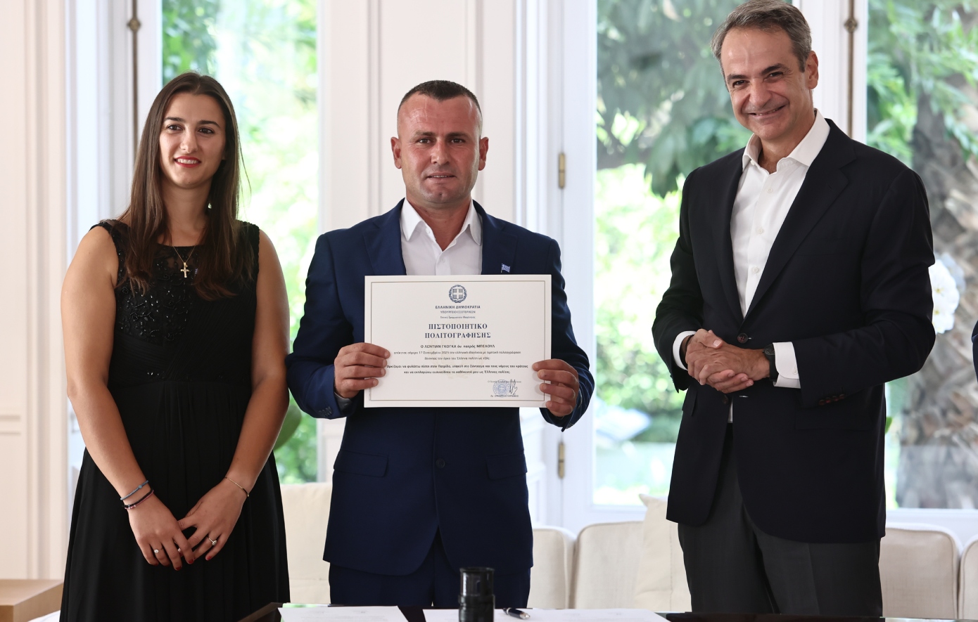 Στο Μέγαρο Μαξίμου ο πρωθυπουργός, Κυριάκος Μητσοτάκης, υπέγραψε την πολιτογράφηση του άνδρα από την Αλβανία που είχε βουτήξει στον ποταμό Άραχθο, για να σώσει δύο ανήλικα αγόρια που παρασύρθηκαν από το ρεύμα.
