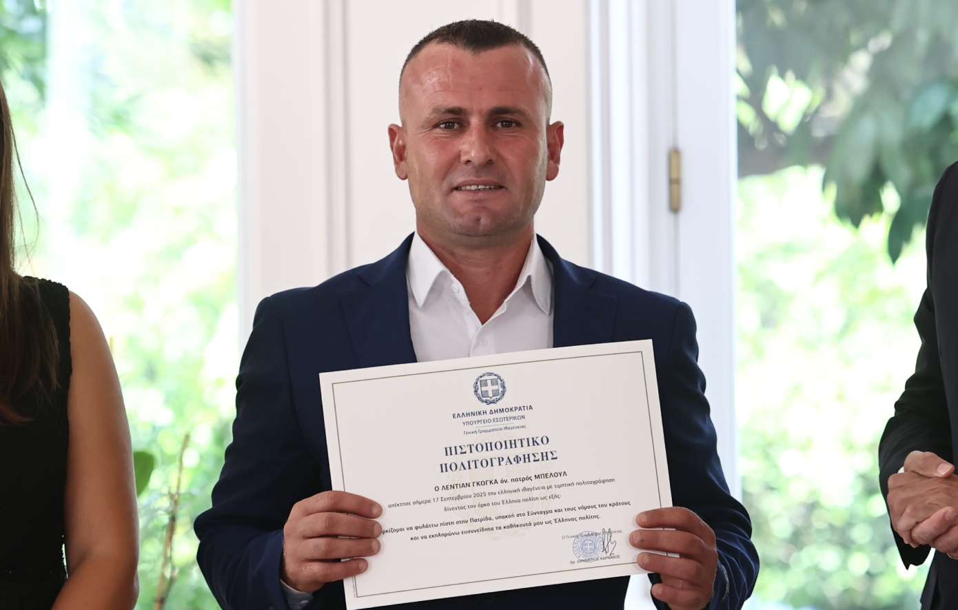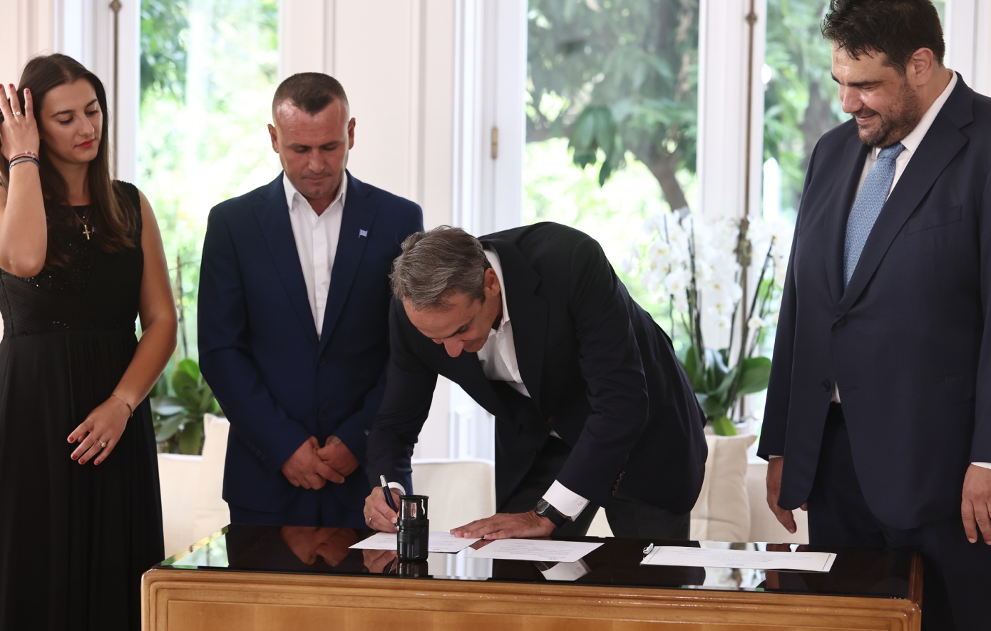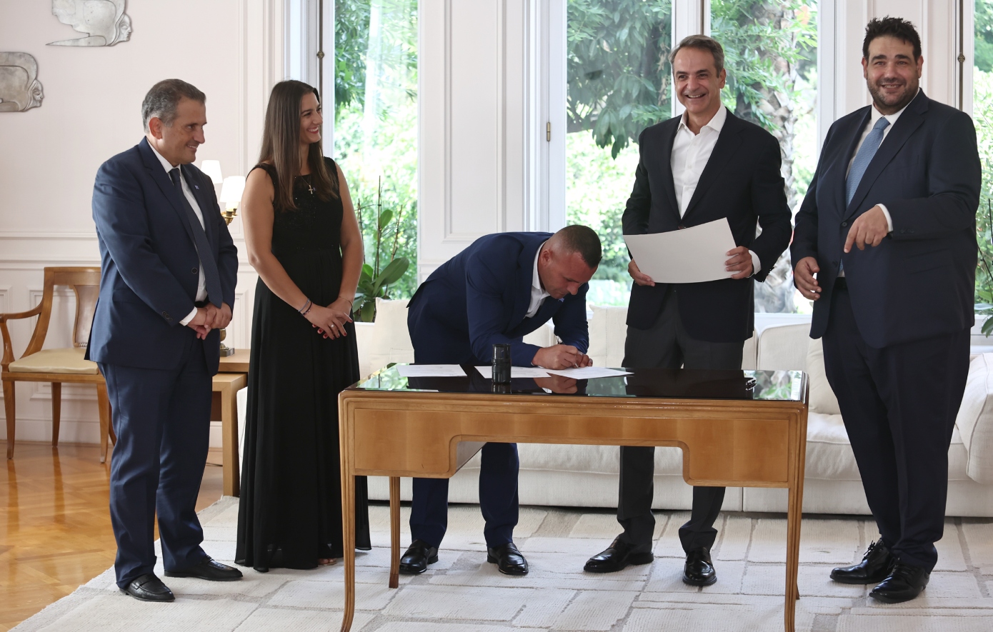 Στο Μέγαρο Μαξίμου ο πρωθυπουργός, Κυριάκος Μητσοτάκης, υπέγραψε την πολιτογράφηση του άνδρα από την Αλβανία που είχε βουτήξει στον ποταμό Άραχθο, για να σώσει δύο ανήλικα αγόρια που παρασύρθηκαν από το ρεύμα.