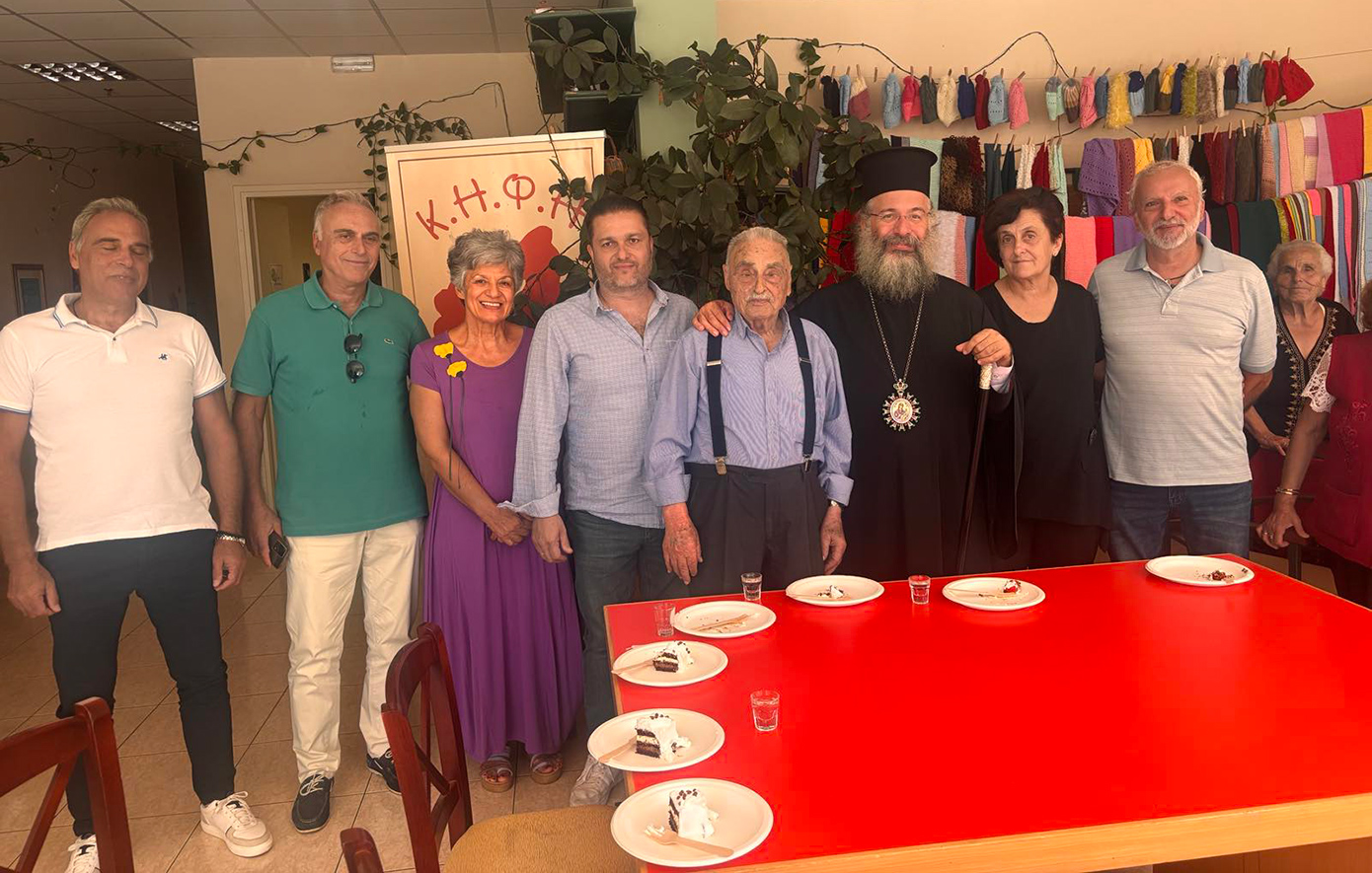 Η γιορτή με τούρτα, δώρα και τραγούδια οργανώθηκε σε συνεργασία με τα παιδιά του εορτάζοντος, την αναπληρώτρια προϊσταμένη του Τμήματος Μέριμνας Τρίτης Ηλικίας, Ελευθερία Βελονάκη, και το προσωπικό του ΚΗΦΗ.