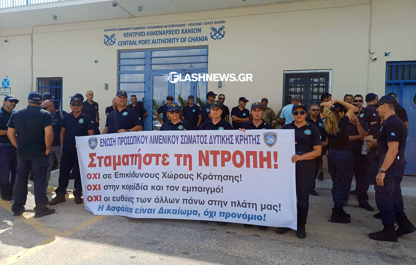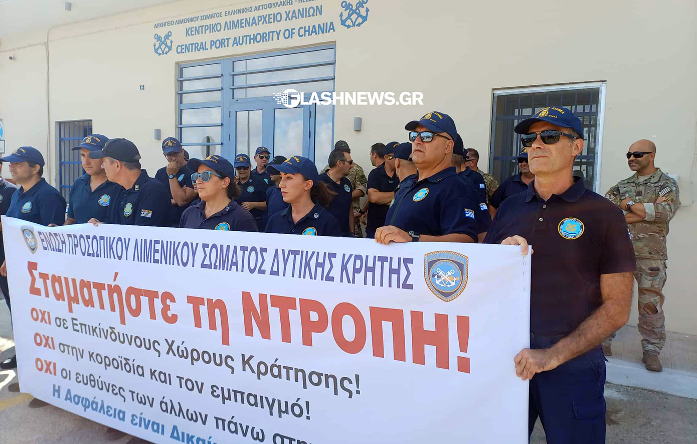 Για τον λόγο αυτό, σαν ύστατη προσπάθεια να εισακουστούν από την κυβέρνηση, οι λιμενικοί από δυτική Κρήτη και ανατολική Κρήτη, πραγματοποίησαν συγκέντρωση διαμαρτυρίας σήμερα έξω από το Λιμεναρχείο Χανίων.