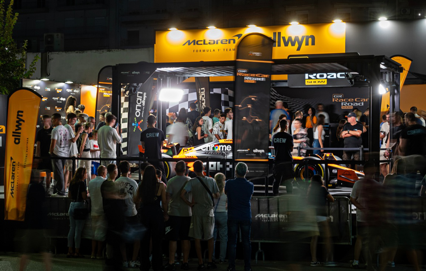 Οι φίλοι του μηχανοκίνητου αθλητισμού – και όχι μόνο – θα μπορούν να δουν από κοντά το showcar της McLaren F1 Team και να φωτογραφηθούν μαζί του. Επιπλέον, θα έχουν τη δυνατότητα να δοκιμάσουν τις ικανότητές τους σε προσομοιωτές Formula 1, να βγάλουν αναμνηστικές φωτογραφίες σε ένα πρωτότυπο photobooth φορώντας εικονικά τη στολή των πιλότων της McLaren και να πάρουν μέρος σε διαδραστικά παιχνίδια.